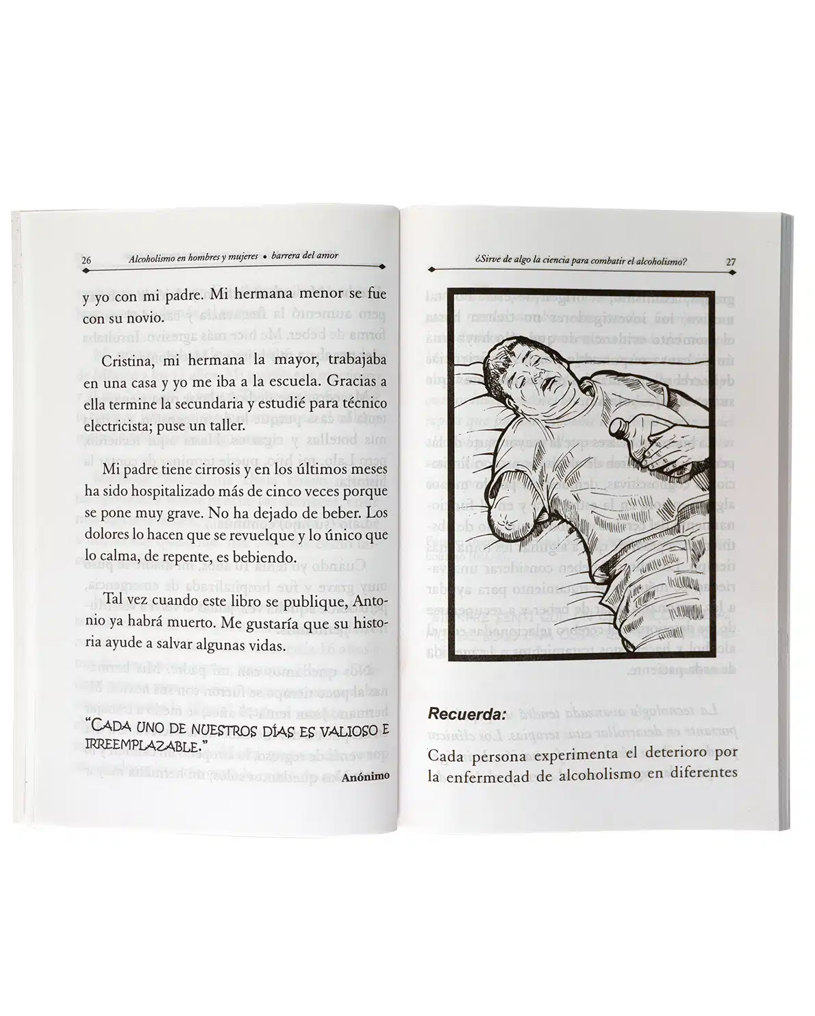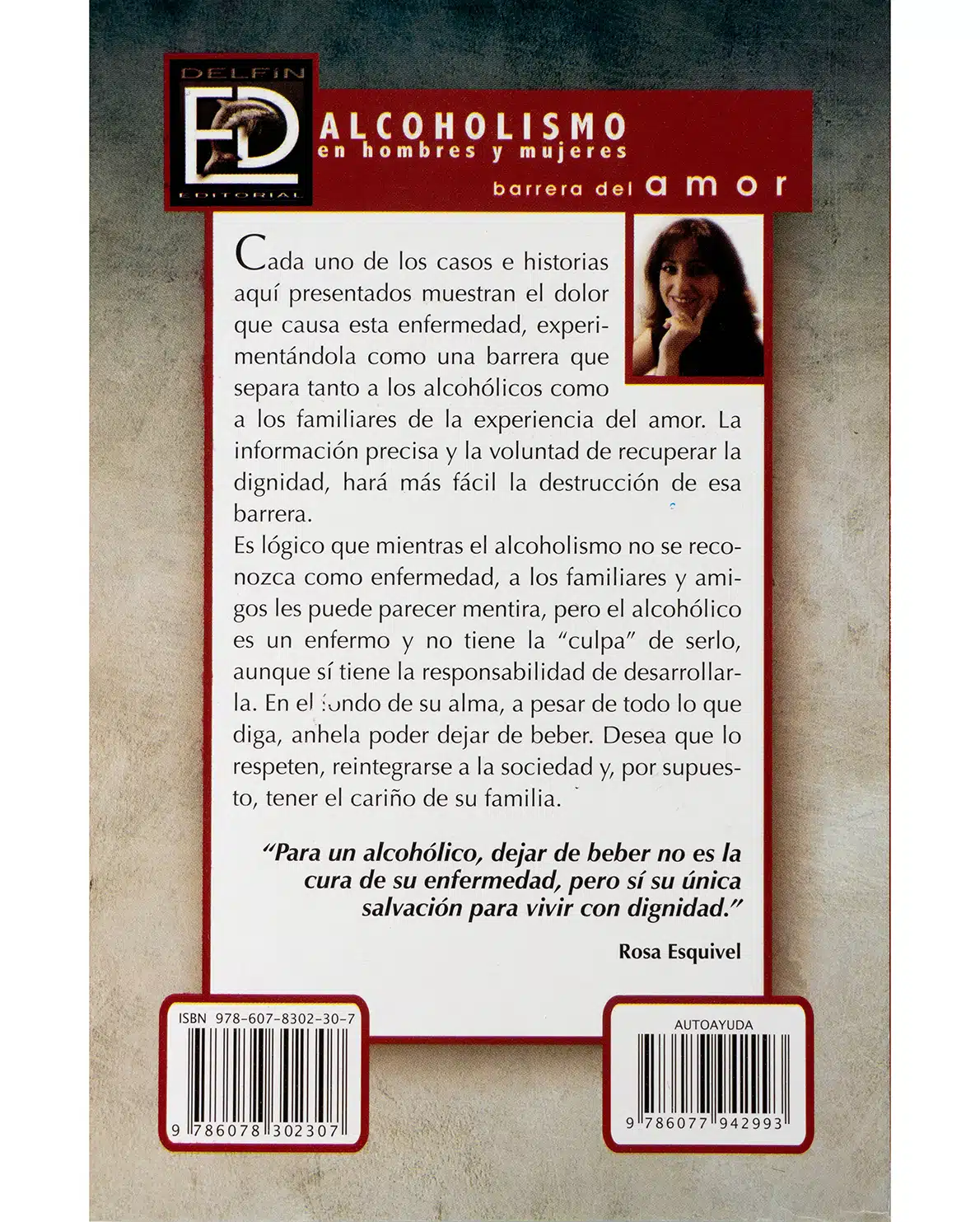 En Alcoholismo en hombres y mujeres: barrera del amor, Rosa Esquivel expone con claridad los efectos emocionales y sociales del alcoholismo, tanto en quienes lo padecen como en sus seres queridos. A través de casos reales y reflexiones profundas, la autora muestra cómo esta enfermedad puede convertirse en una barrera para el amor, la comunicación y la estabilidad familiar.