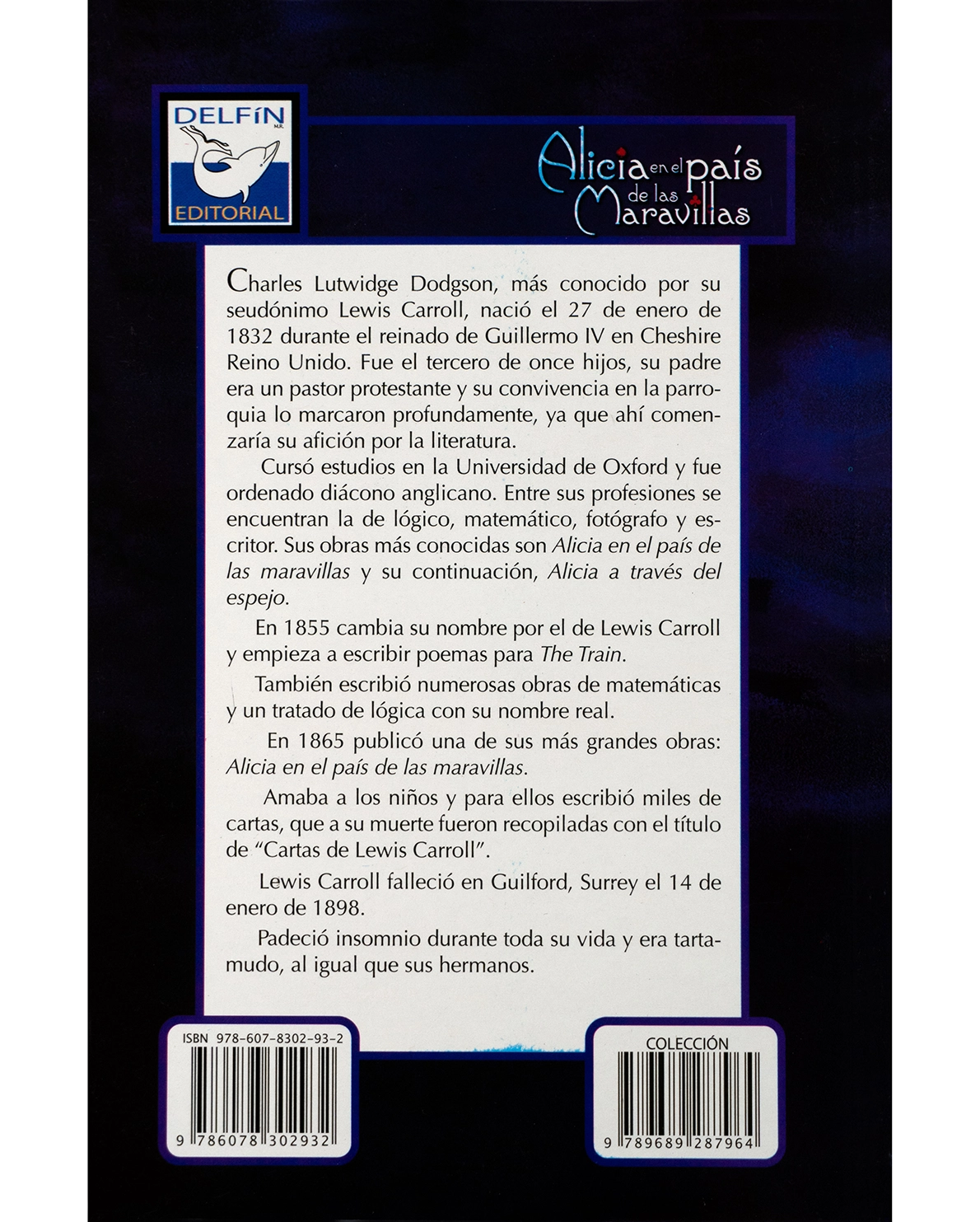 El libro incluye una biografía introductoria del autor, resaltando su interés por el lenguaje, los juegos lógicos y la literatura infantil.