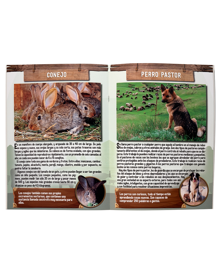 Descubre los animales que habitan en la granja y aprende más sobre ellos en este libro lleno de ilustraciones atractivas y contenido educativo.