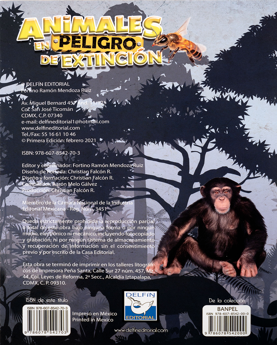 Animales en Peligro de Extinción es una obra que busca concientizar sobre la importancia de preservar la biodiversidad. Con un estilo visual impactante y textos claros, este libro presenta especies emblemáticas como el panda gigante, el rinoceronte, el lobo y muchas más. Es un recurso educativo valioso para niños, jóvenes y adultos interesados en el medio ambiente, ya que muestra de forma accesible las amenazas que enfrentan estos animales y el papel que cada uno de nosotros tiene en su conservación.