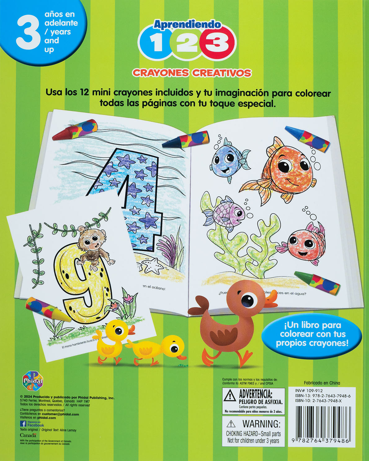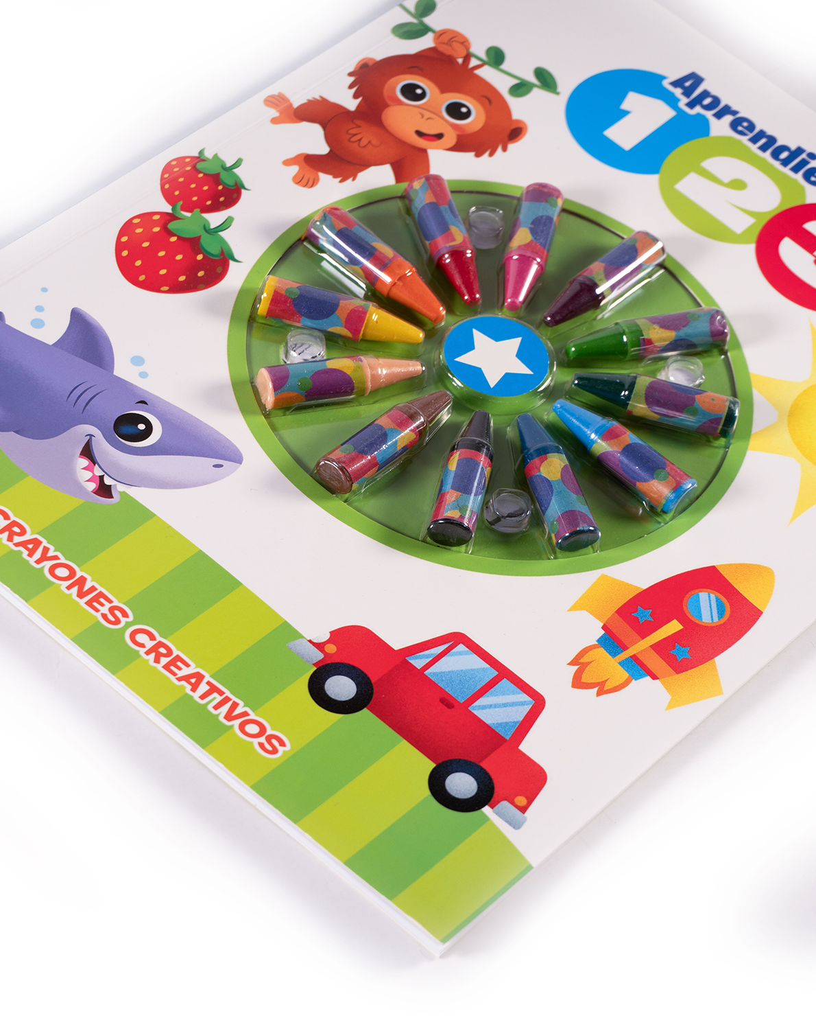 Incluye 12 mini crayones coloridos y ergonómicos, perfectos para que los más pequeños puedan dar vida a números del 1 al 10 acompañados de simpáticos personajes como peces, patitos, monos y más. Cada página estimula la coordinación motriz, el reconocimiento numérico y el aprendizaje temprano a través del juego creativo.