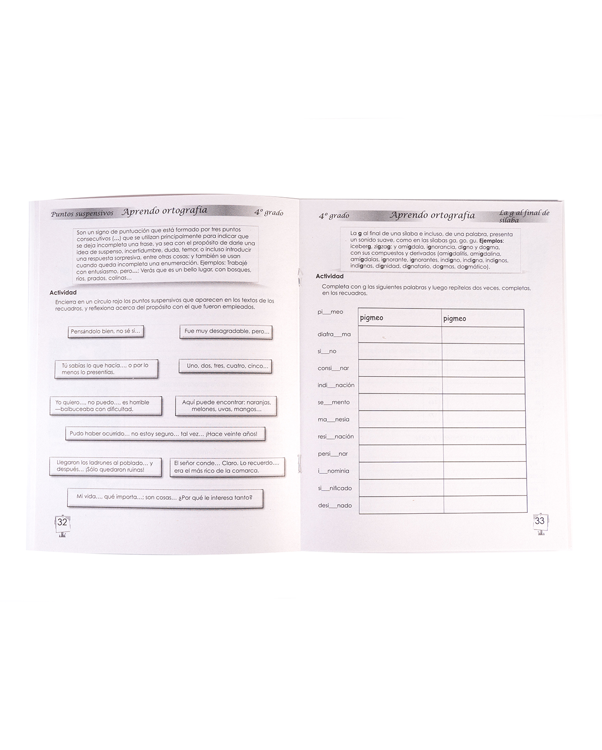 El libro incluye ejercicios prácticos, desafíos interactivos y explicaciones claras que abordan reglas más complejas, como el uso de palabras con “ción”, “ía”, acentuación y estructuras gramaticales más avanzadas. Además, fomenta la mejora de la caligrafía y la comprensión del vocabulario a través de actividades dinámicas y divertidas.