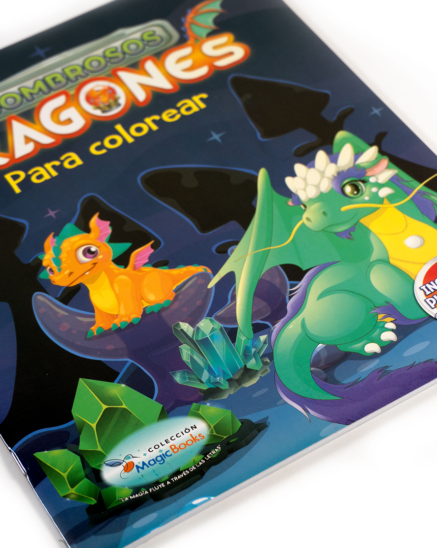 Un libro mágico de dragones para colorear, lleno de fantasía y diversión. ¡Incluye stickers!