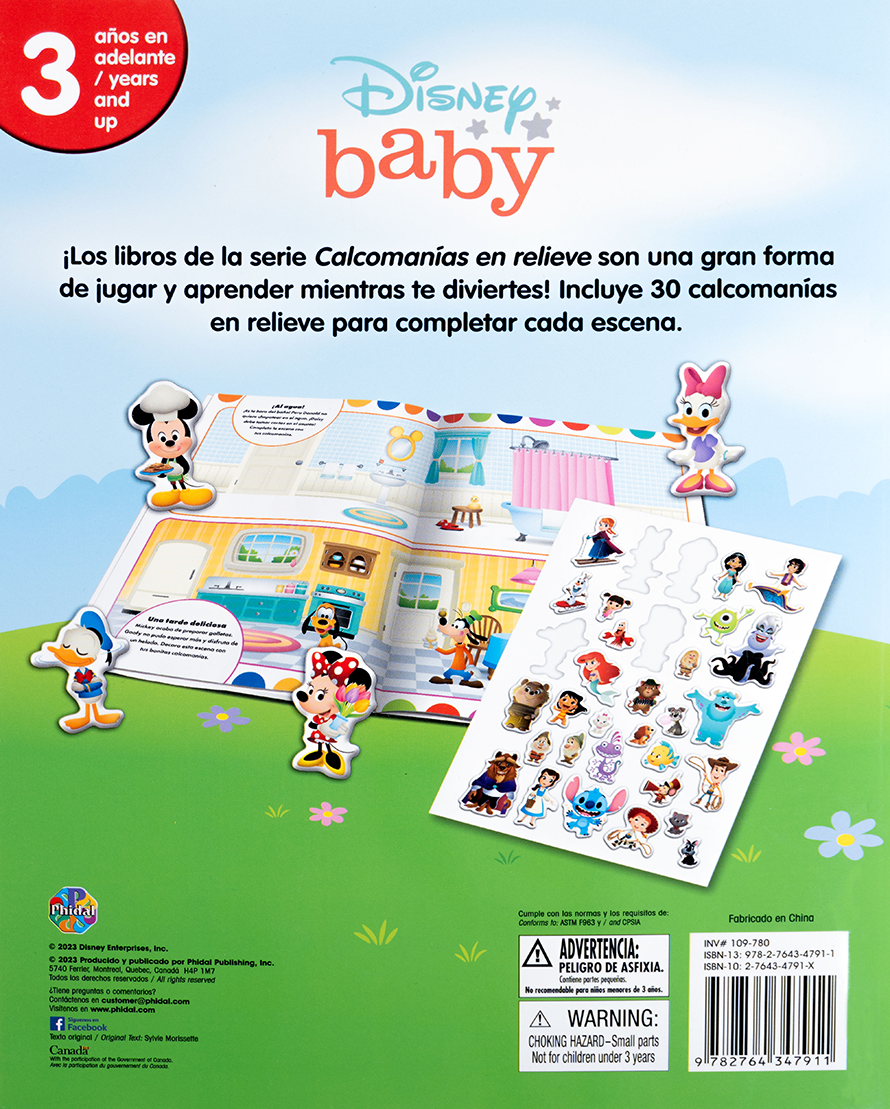 Los más pequeños descubrirán el mundo de Disney Baby con este encantador libro que incluye más de 30 calcomanías en relieve. Con personajes adorables como Mickey, Minnie, Daisy, Donald y muchos más, los niños podrán completar escenas coloridas que estimulan la imaginación y el desarrollo sensorial. Ideal para niñas y niños a partir de los 3 años, es una excelente herramienta para jugar y aprender en compañía de sus personajes favoritos.