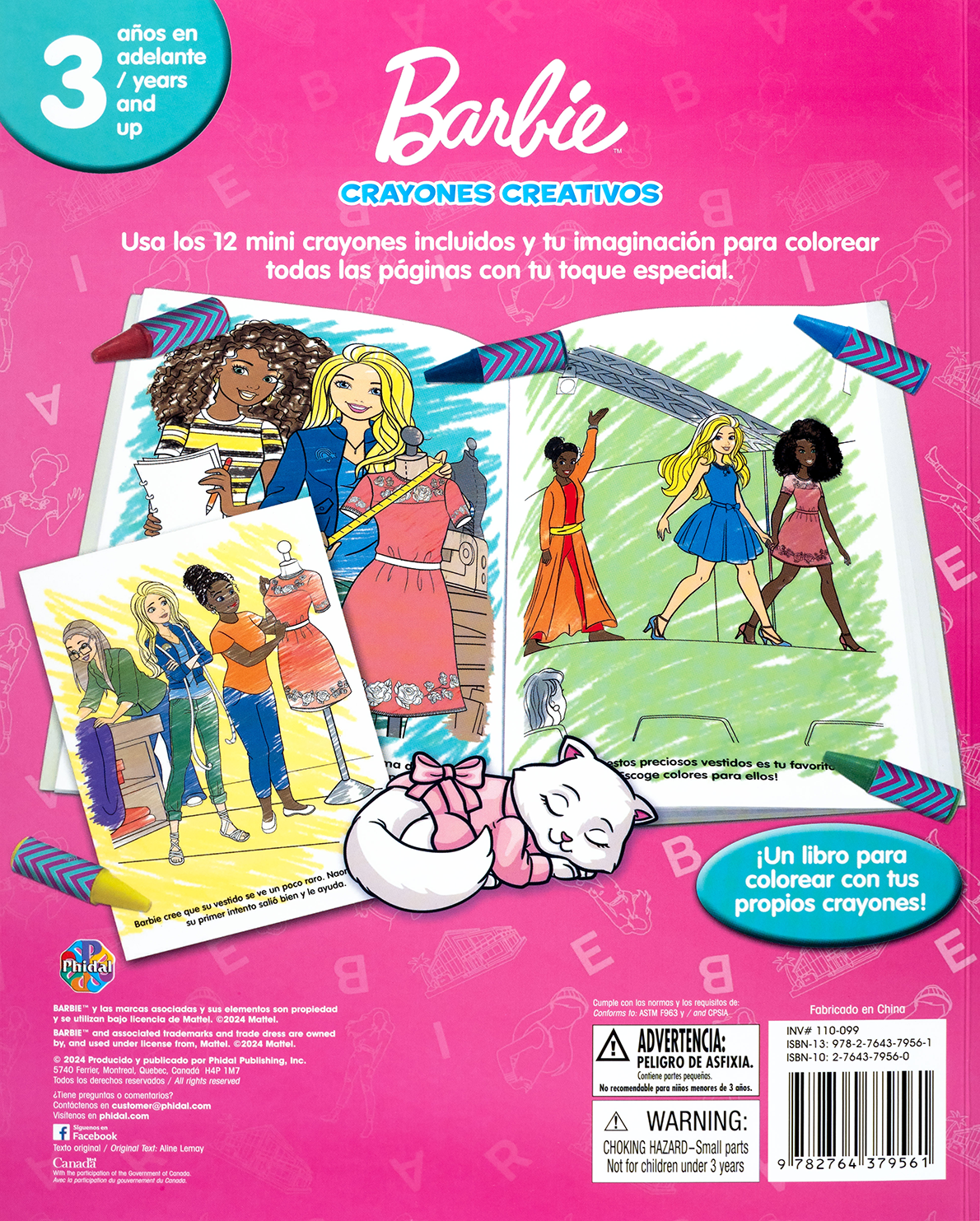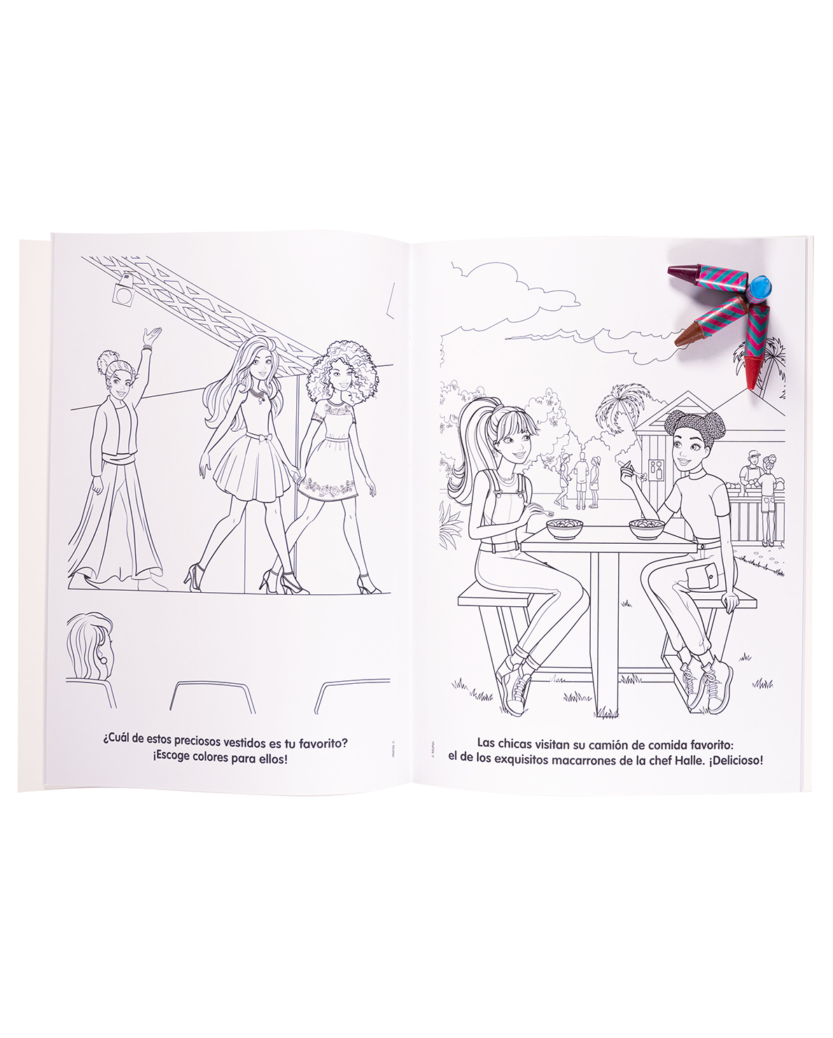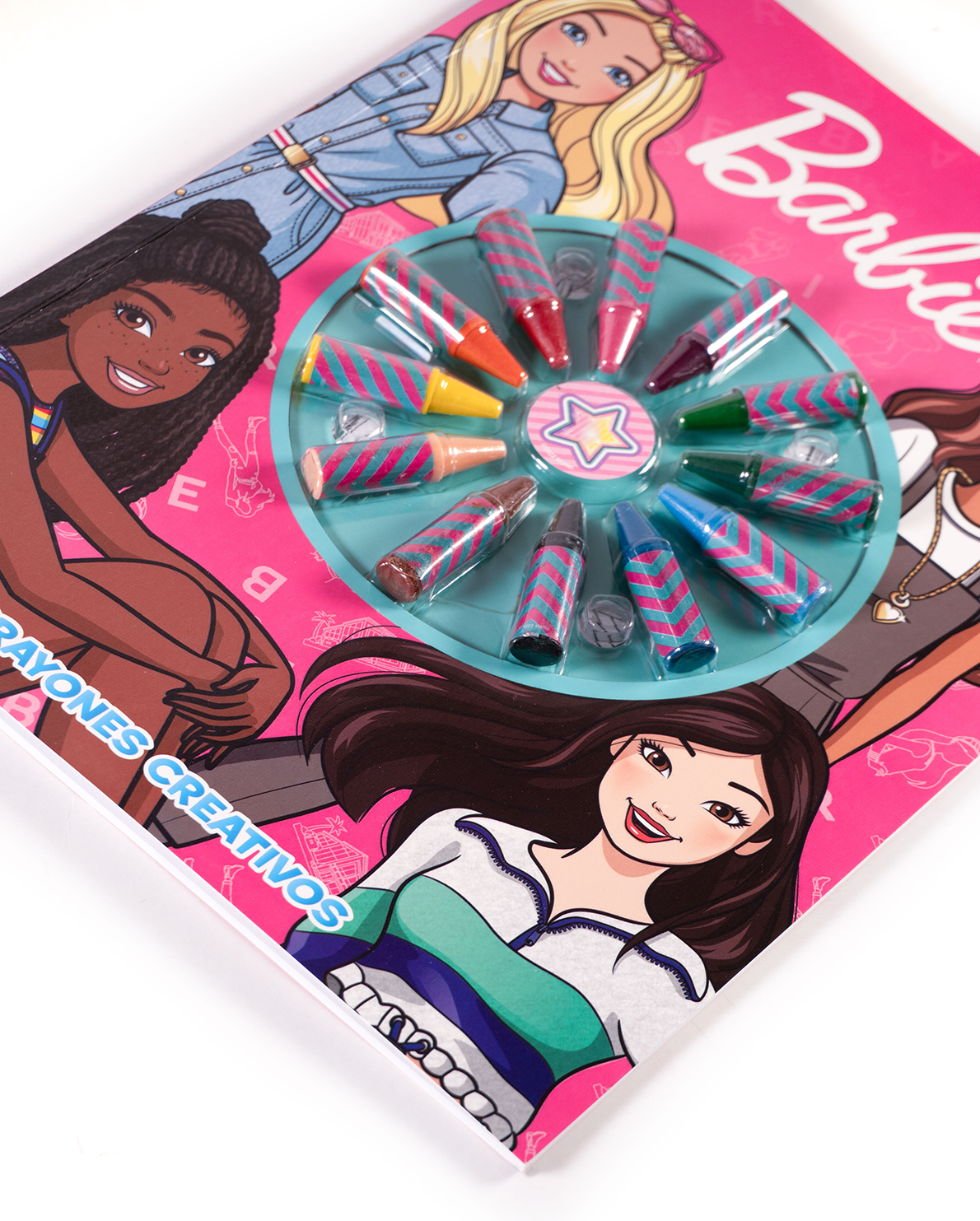Incluye 12 mini crayones con diseño moderno y ergonómico, pensados para manos pequeñas. Las páginas están llenas de escenas de Barbie diseñando ropa, compartiendo con sus amigas, y viviendo aventuras inspiradoras, listas para llenarse de color.