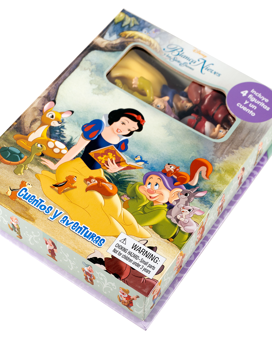Revive el clásico de Disney con Blanca Nieves y los siete enanos. Incluye 4 figuras y un cuento ilustrado.