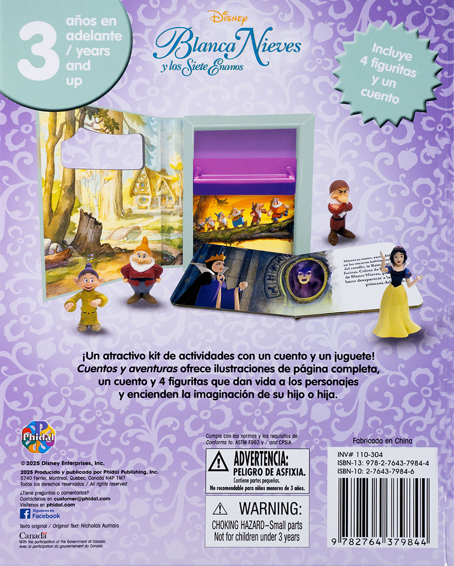 Sumérgete en la historia mágica de Blanca Nieves con este hermoso set de Cuentos y Aventuras. El libro contiene una versión ilustrada del clásico cuento de Disney y 4 figuras que representan a los entrañables personajes, como Blanca Nieves, la Reina Malvada y dos enanitos. Perfecto para niños desde los 3 años, este kit fomenta la lectura, el juego simbólico y el amor por las historias tradicionales. ¡Un tesoro para compartir en familia!