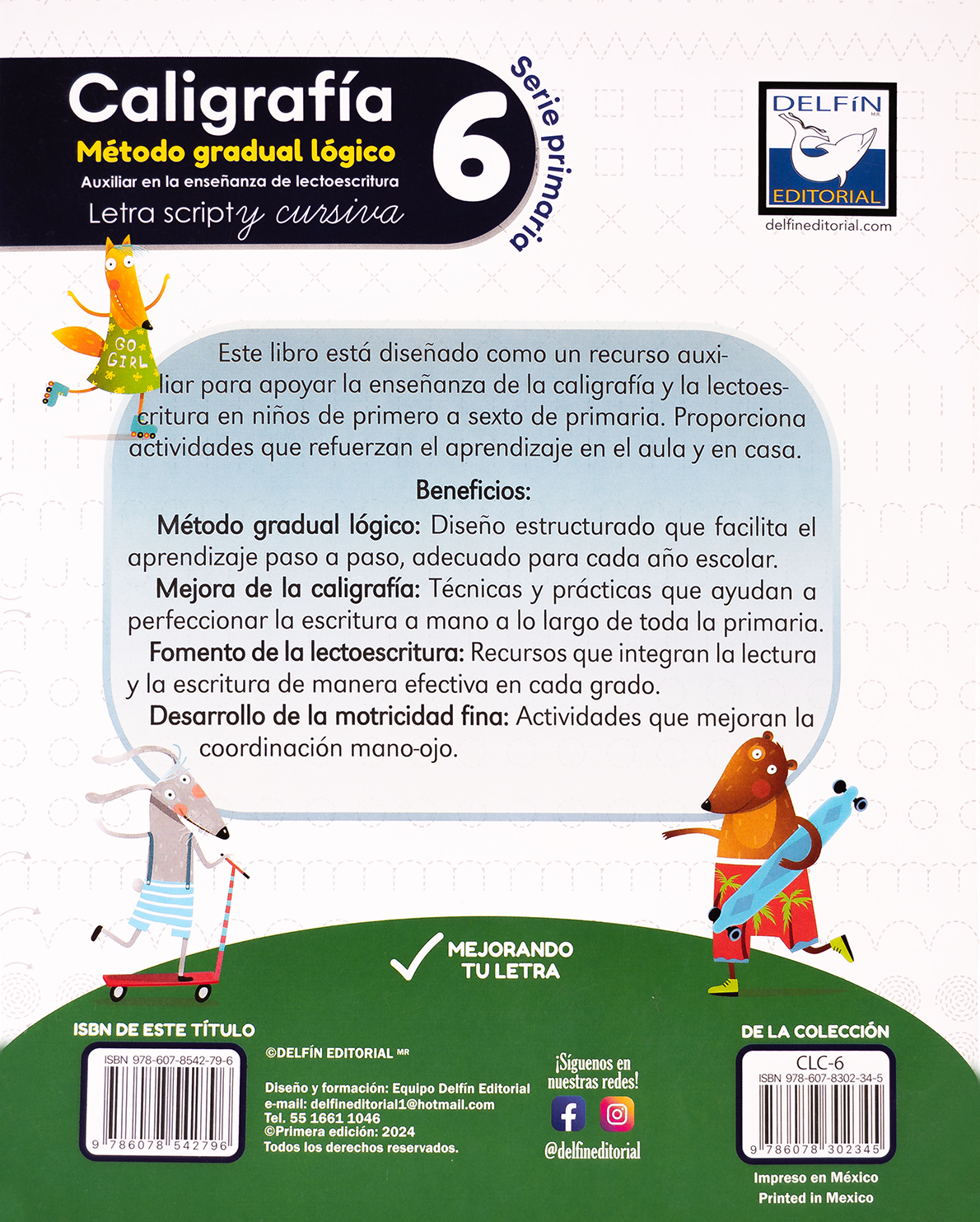 Caligrafía 6 es el nivel final del método gradual lógico, enfocado en lograr una escritura fluida, legible y estética. A través de textos completos, palabras técnicas y frases complejas, los alumnos ejercitan tanto la letra cursiva como la script en contextos funcionales. Este cuaderno estimula la concentración, la ortografía y la presentación personal de los escritos, preparando al estudiante para el uso autónomo y profesional de la caligrafía.