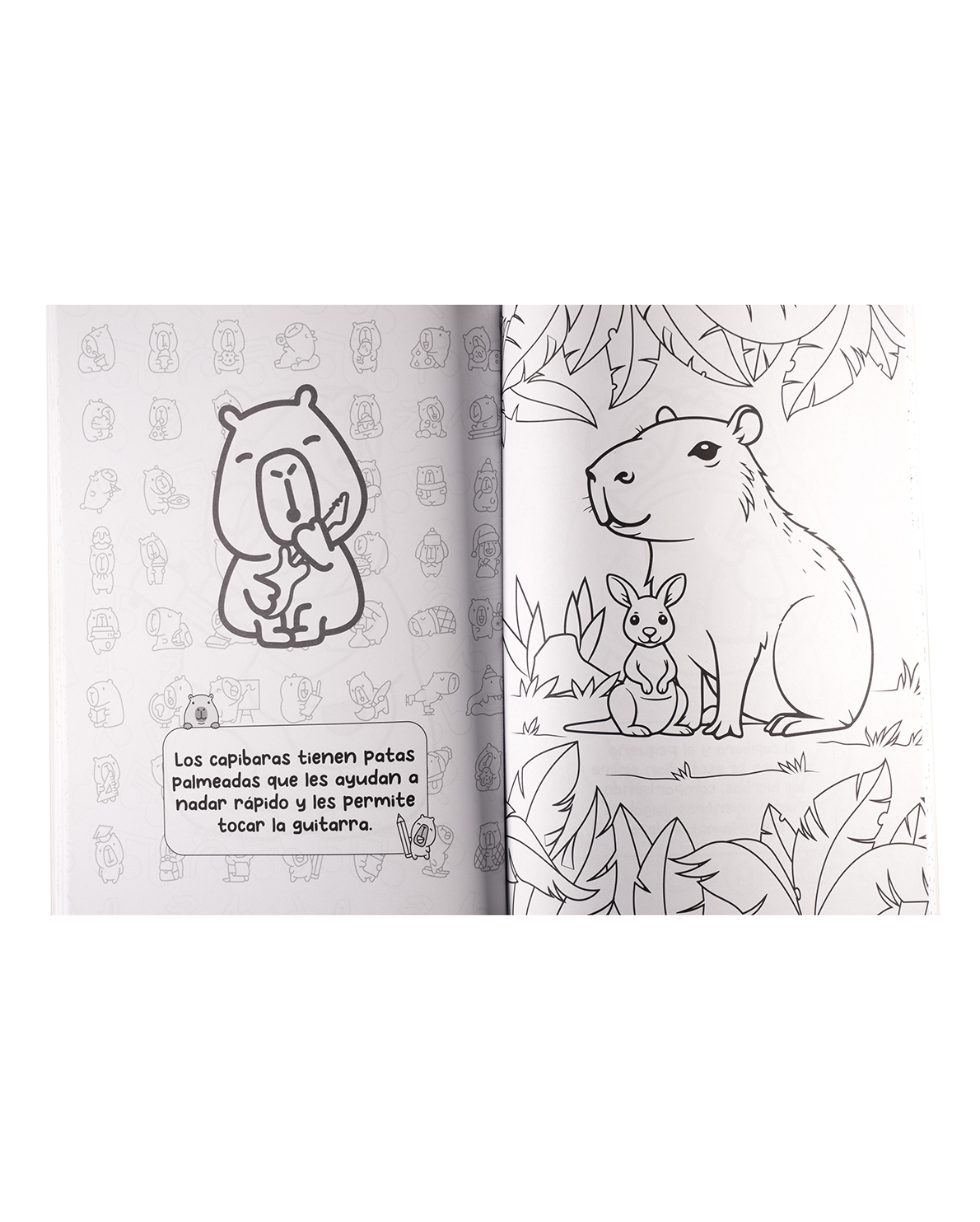 Sumérgete en este oasis natural y dale color a cada página con tu estilo único, acompañado de las criaturas más relajadas del reino animal: las capibaras.