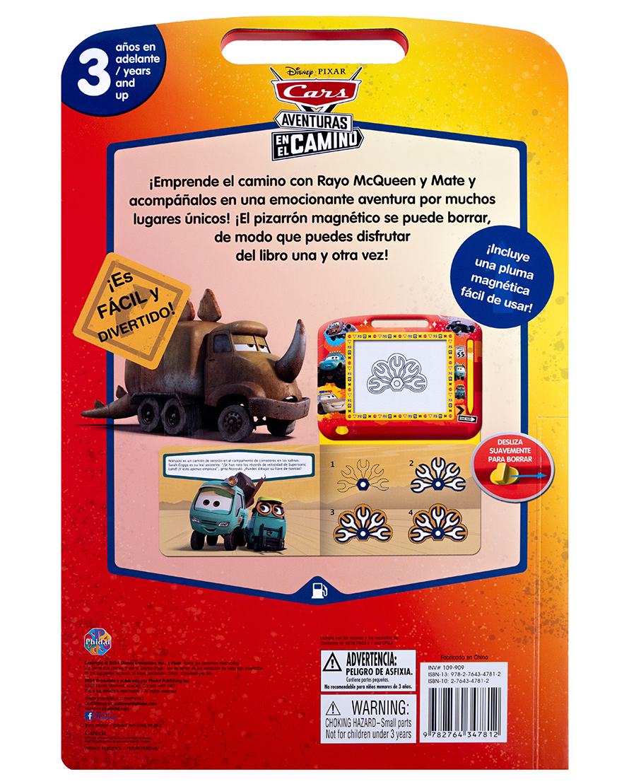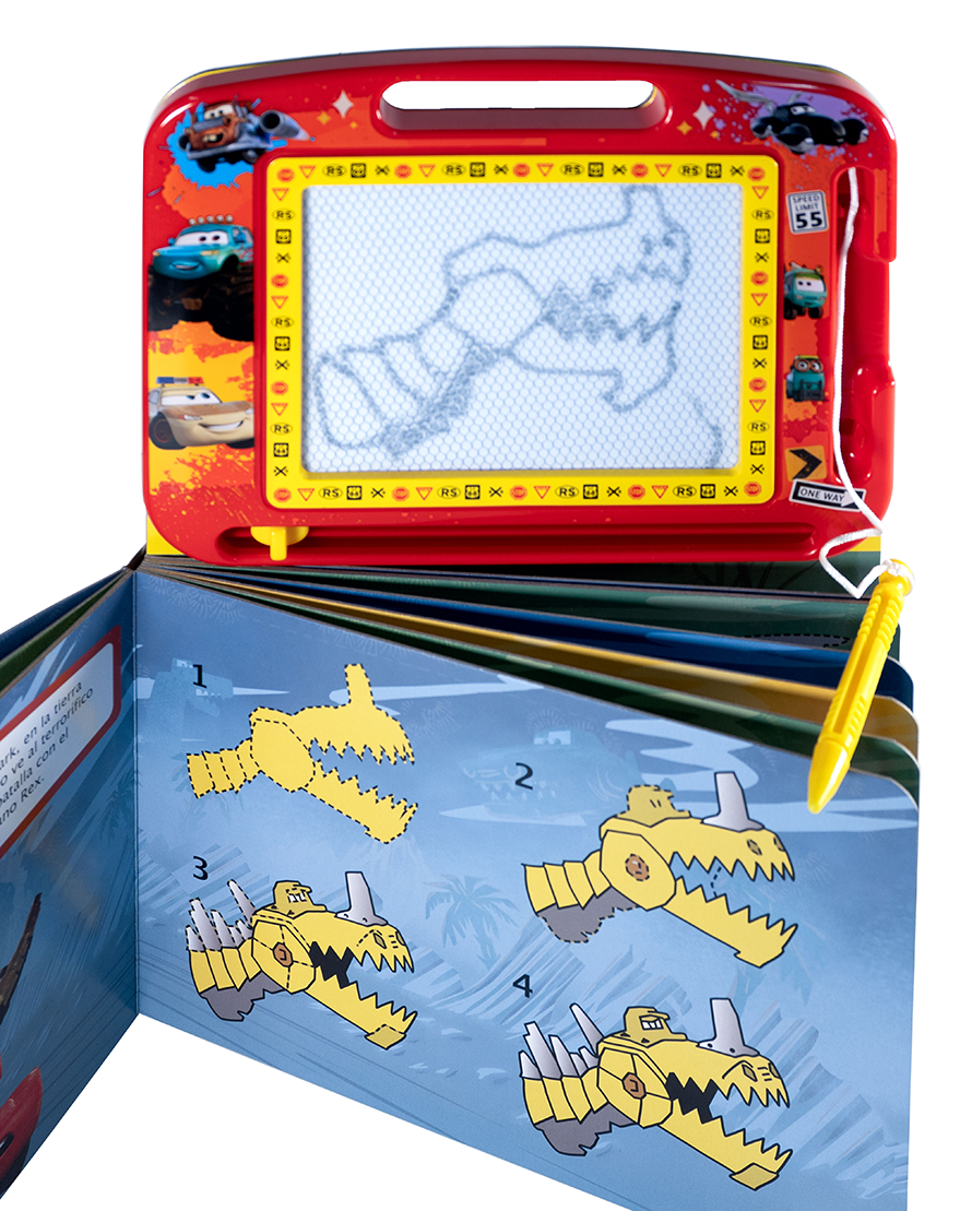 ¡Arranca motores con Rayo McQueen y Mate! Este libro con pizarra magnética invita a los niños a acompañar a sus personajes favoritos en emocionantes rutas. Aprende a dibujar con la pluma magnética, siguiendo pasos sencillos y divertidos. La pizarra se puede borrar fácilmente, lo que permite repetir las actividades muchas veces. A partir de 3 años.