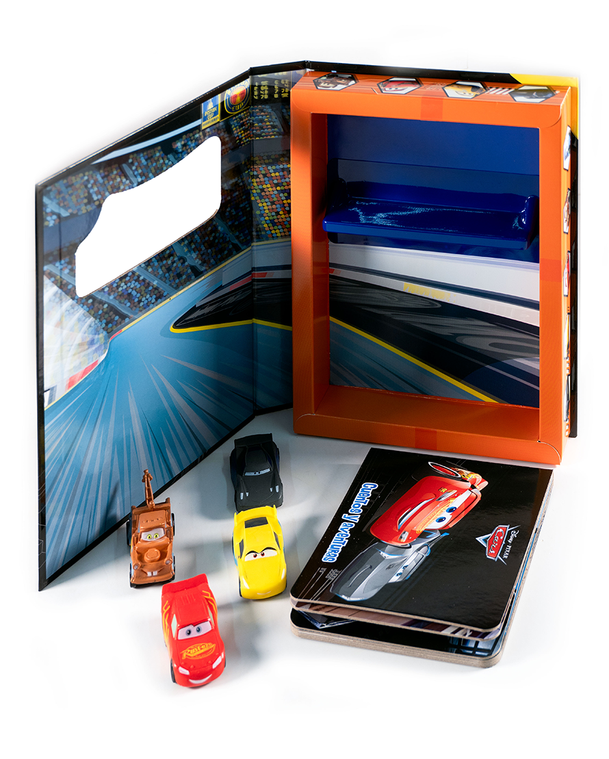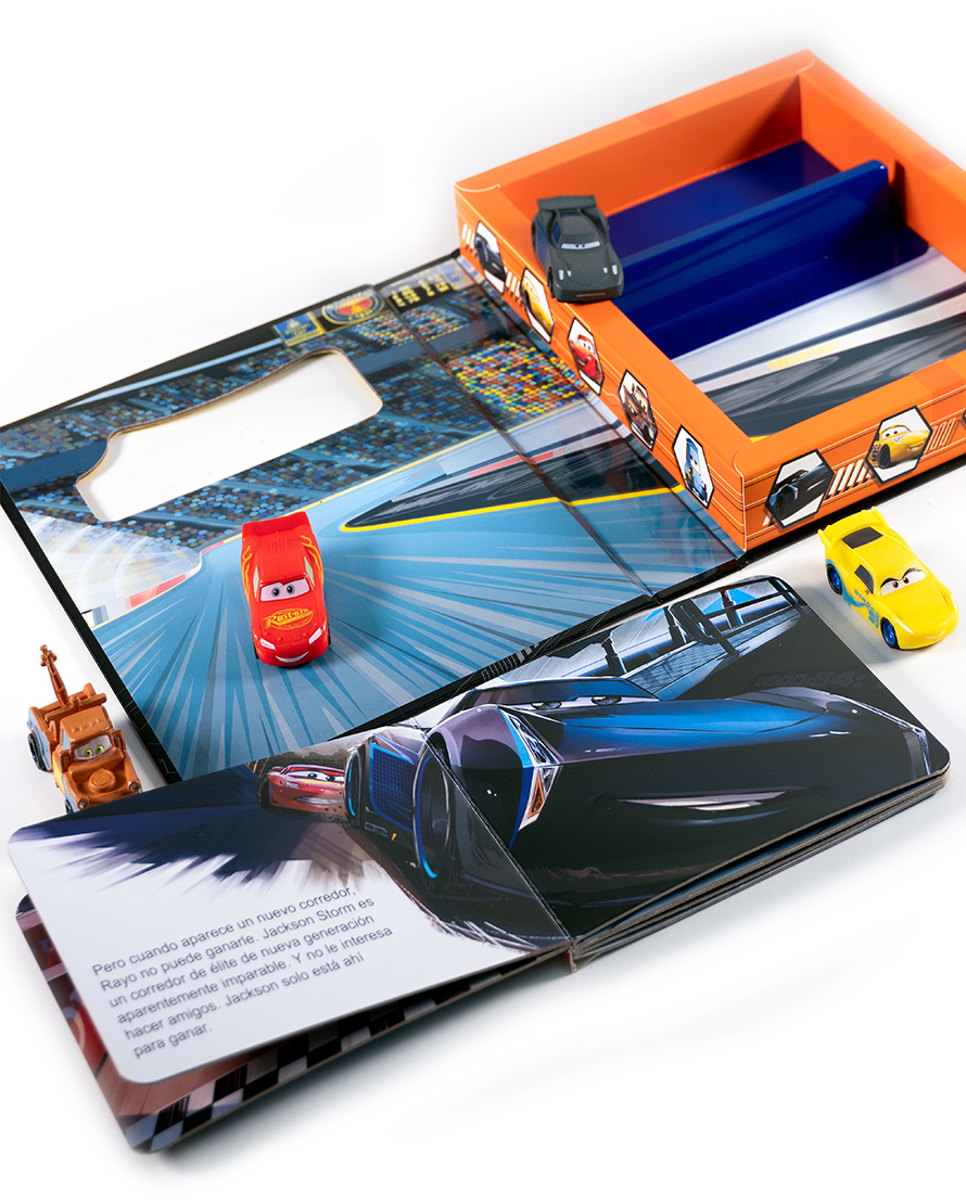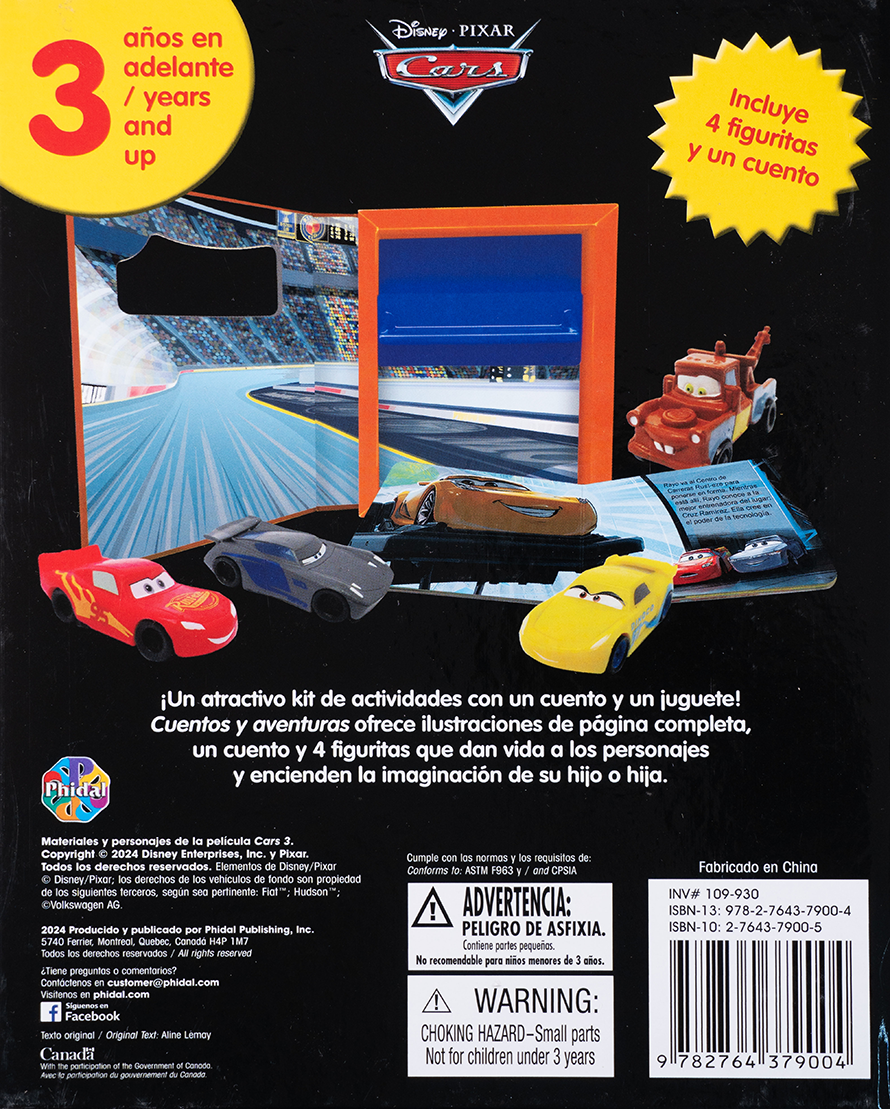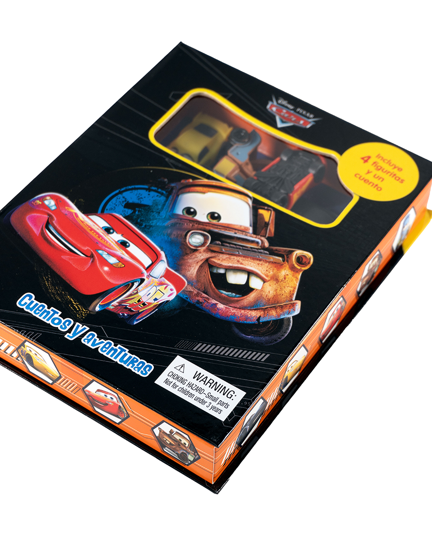 Revive la emoción de las pistas con Cars: Cuentos y Aventuras. Este entretenido set contiene un cuento de páginas completas con los personajes de Cars 3, junto con 4 figuras que darán vida a cada historia. Diseñado para niños desde los 3 años, este libro estimula la imaginación a través del juego narrativo. ¡Ideal para pequeños fanáticos de Rayo McQueen y sus amigos!