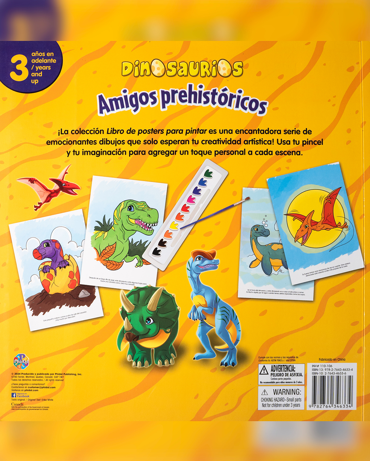 “Dinosaurios: Amigos Prehistóricos – Libro de pósters para pintar” es una divertida propuesta creativa que lleva a los más pequeños a un viaje al pasado, donde podrán dar vida a sus dinosaurios favoritos con color y pincel. Diseñado para niños y niñas a partir de los 3 años, este libro es perfecto para estimular la motricidad fina, la concentración y la expresión artística.