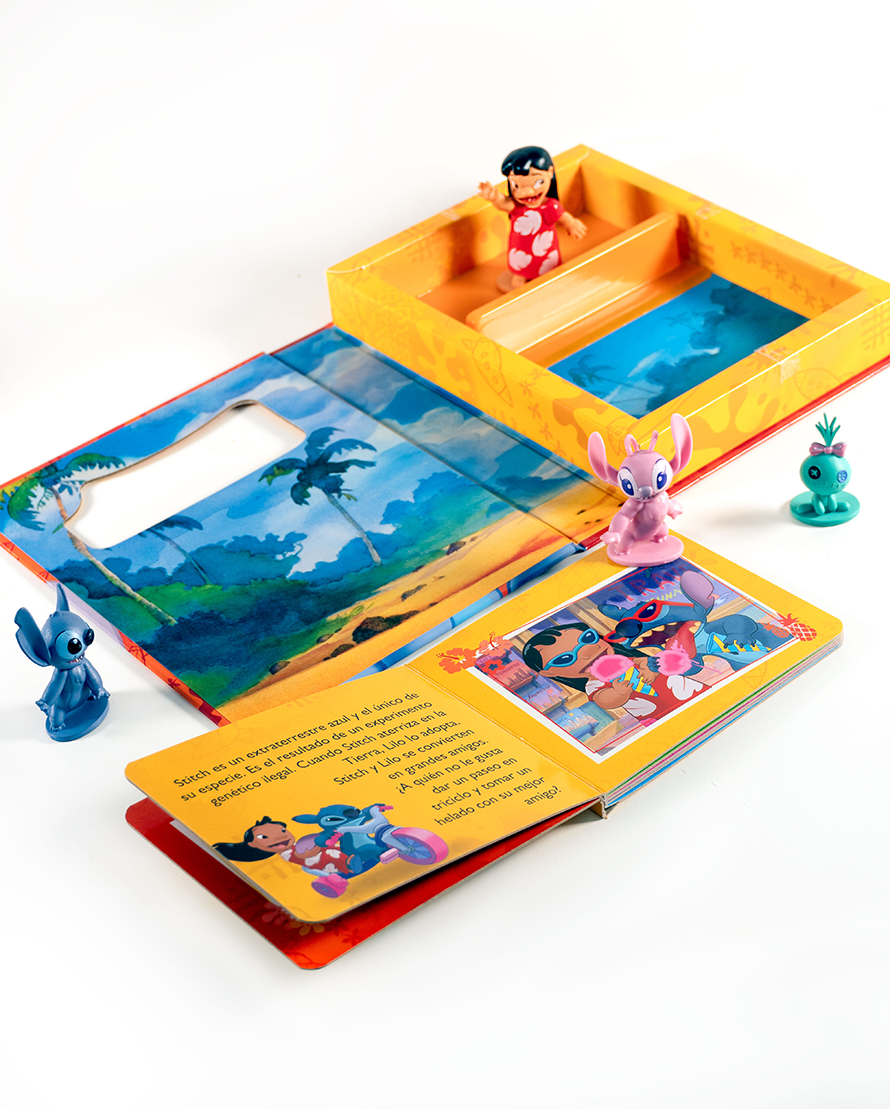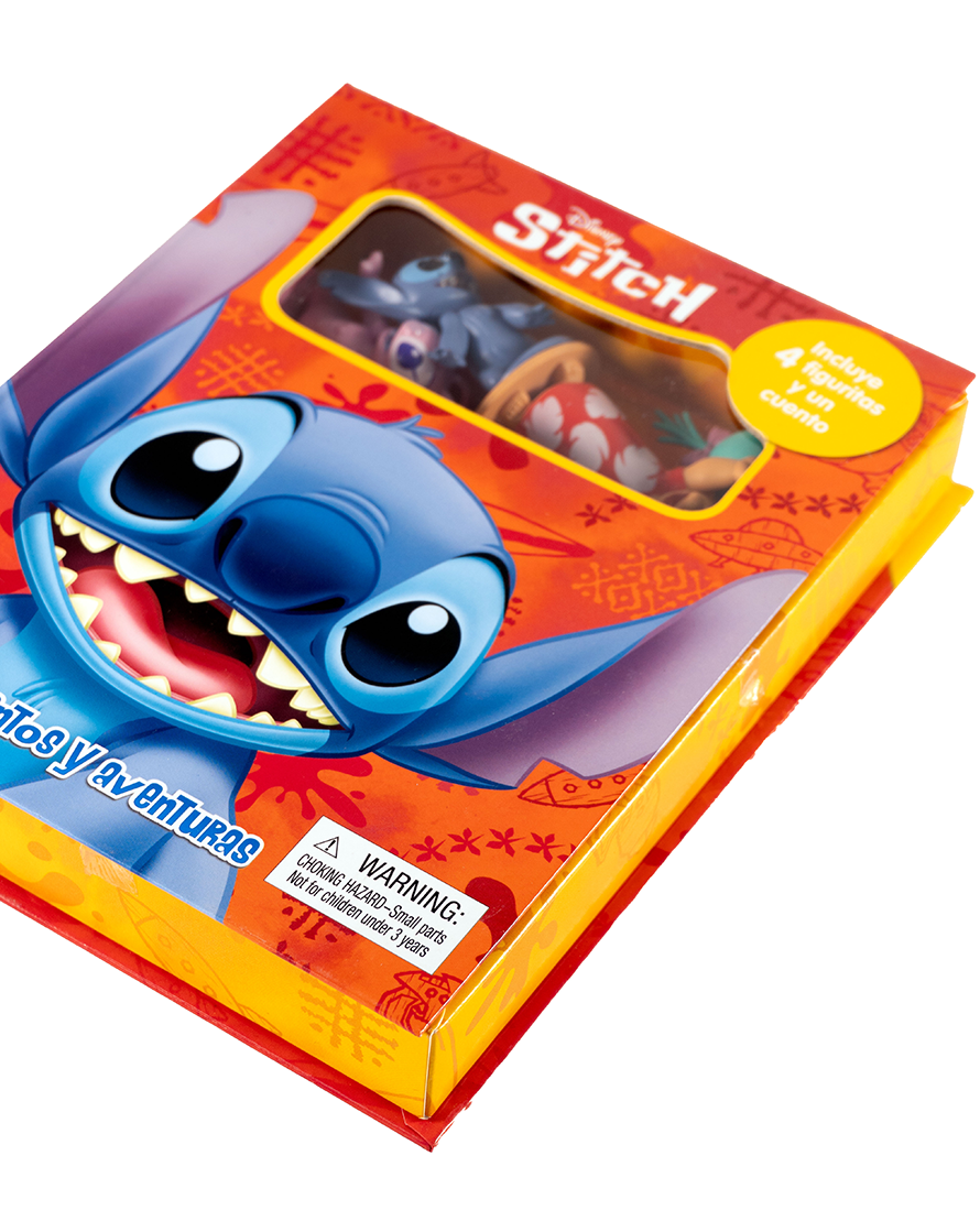 Un divertido set de cuentos con Stitch y sus amigos, ideal para fomentar la lectura y el juego.
