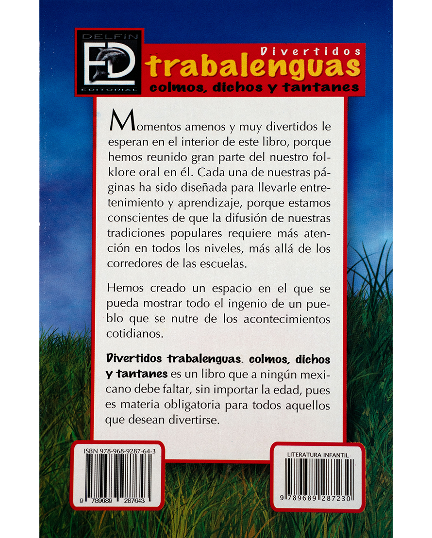 Este libro reúne gran parte del folklore oral mexicano en una colección pensada para divertir y fortalecer la tradición popular. Sus páginas están llenas de trabalenguas que desafían la dicción, colmos que provocan carcajadas y dichos que forman parte del lenguaje cotidiano.