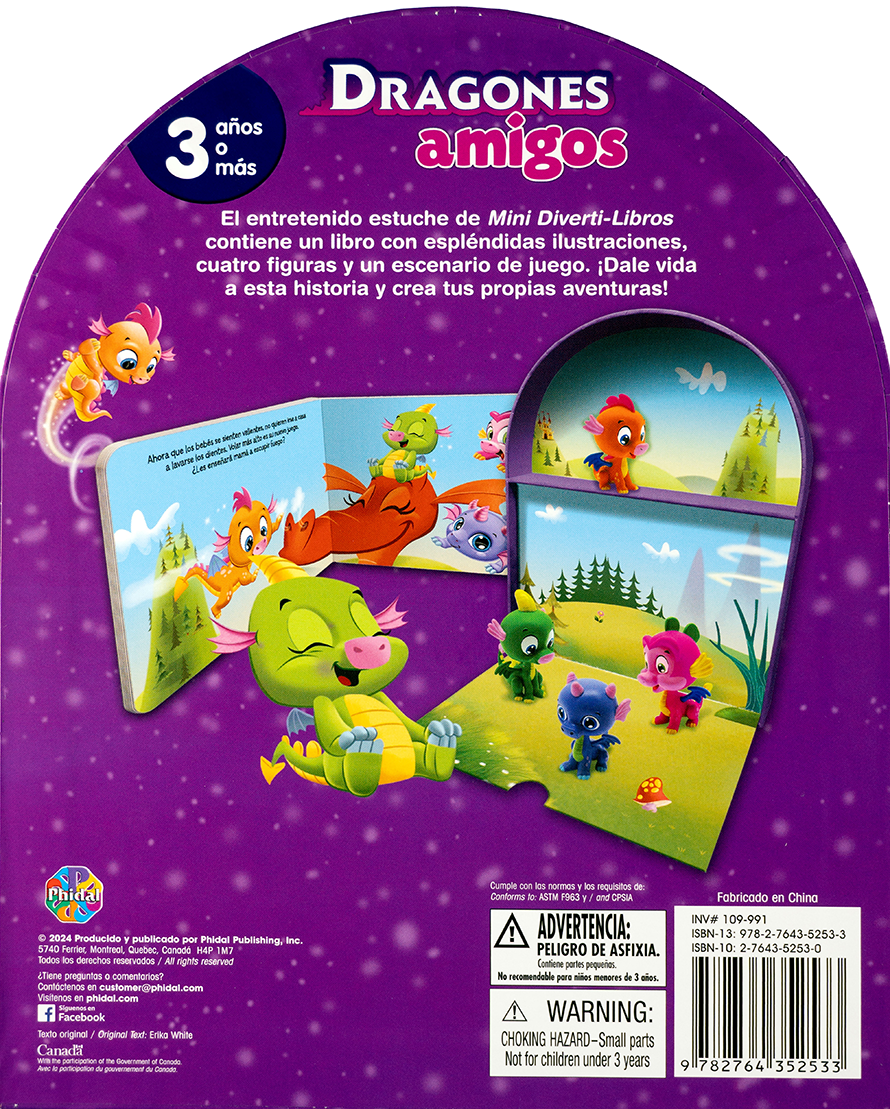 Vuela hacia un mundo mágico con Dragones Amigos, un mini libro ilustrado lleno de fantasía, con 4 figuras de dragones bebés y un escenario de juego. Este set invita a las niñas y niños a imaginar nuevas aventuras en un universo encantador lleno de colores y ternura. Recomendado para mayores de 3 años, es perfecto para despertar la imaginación y fomentar la lectura a través del juego.
