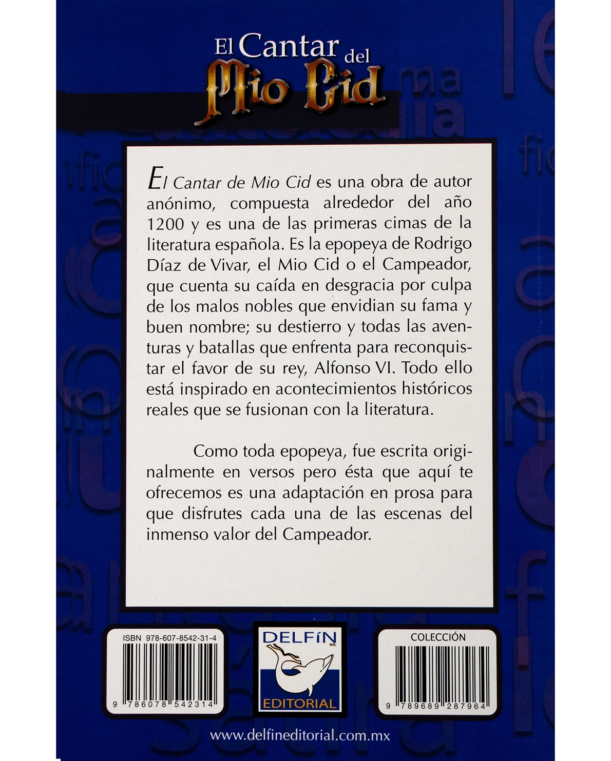 El Cantar del Mio Cid es una de las obras cumbre de la literatura española, compuesta alrededor del año 1200 y de autor anónimo. Esta edición presenta una adaptación en prosa que permite al lector disfrutar con mayor claridad la epopeya del Cid Campeador, héroe desterrado injustamente que lucha por recuperar su honor y el favor de su rey, Alfonso VI.