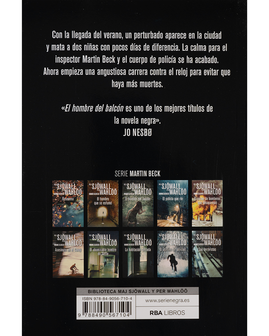 El verano en Estocolmo se convierte en pesadilla cuando un perturbado asesina a dos niñas en pocos días. La calma se rompe y el inspector Martin Beck debe enfrentarse a una angustiosa investigación contrarreloj. La presión aumenta mientras el número de víctimas amenaza con crecer y la ciudad entera se sumerge en el miedo. El hombre del balcón es uno de los títulos más impactantes de la serie Martin Beck, alabado como uno de los mejores ejemplos de novela negra nórdica.