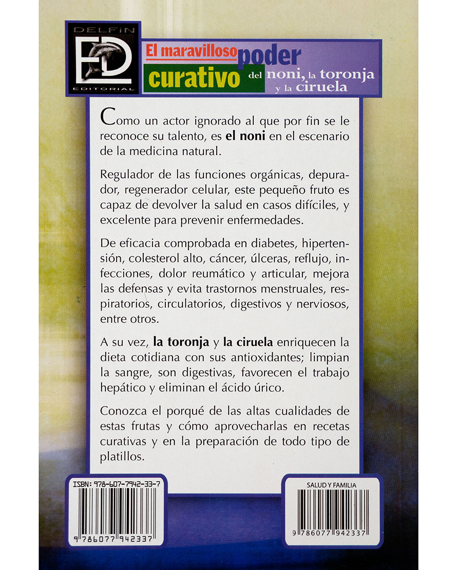 En esta obra, Ma. Esther Centeno Canal presenta al noni como uno de los frutos más valorados en la medicina natural por sus propiedades reguladoras y regeneradoras. Reconocido por su capacidad depurativa y fortalecedora del organismo, el noni se ha utilizado como apoyo en diversos padecimientos como diabetes, hipertensión, colesterol alto y problemas digestivos.
