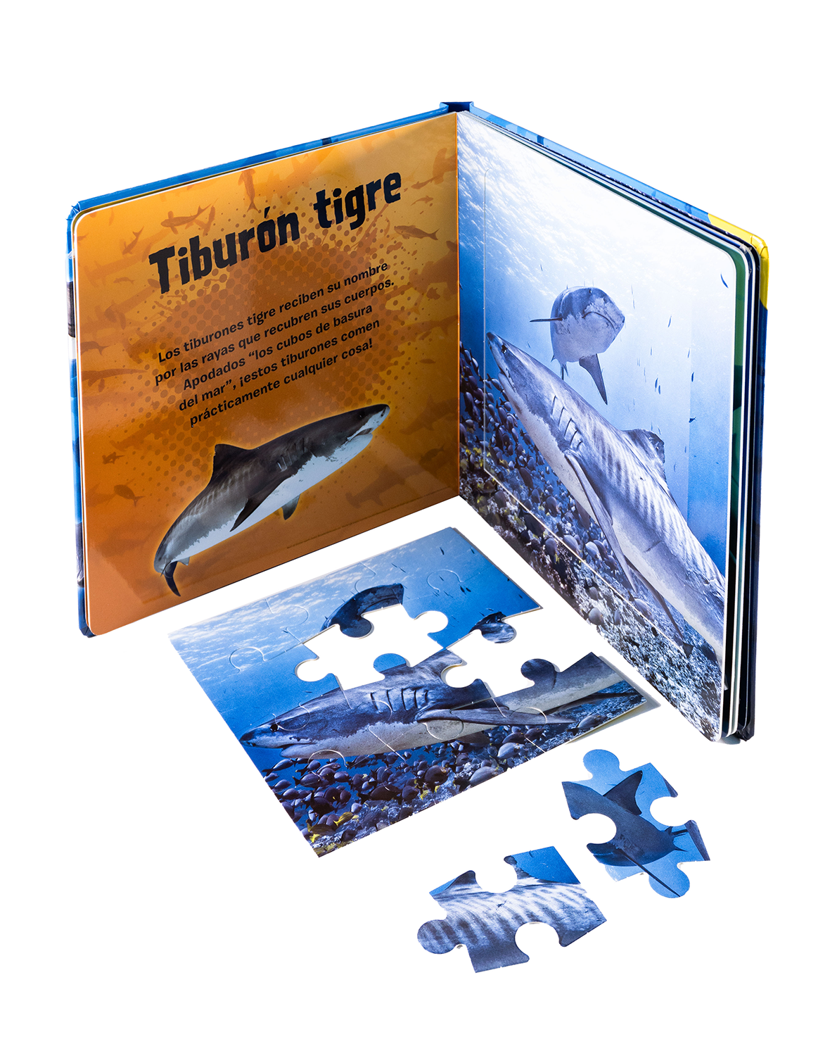 Explora el fascinante mundo marino con este libro de rompecabezas dedicado a los tiburones. Aprende sobre el tiburón tigre y otras especies mientras armas 3 puzzles espectaculares. Ideal para pequeños curiosos desde los 3 años, este libro combina ciencia, diversión y habilidades cognitivas en una experiencia inolvidable. ¡Perfecto para amantes del océano y la naturaleza!