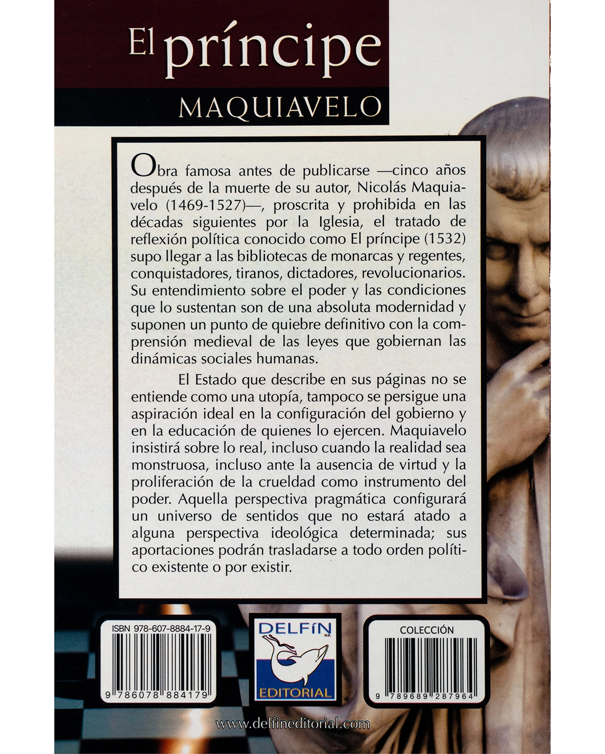 La obra examina cómo se adquiere, conserva y ejerce el poder, abordando temas como la virtud, la fortuna, la crueldad y la autoridad. Prohibido durante décadas por la Iglesia, este libro ha sido leído por gobernantes, revolucionarios y pensadores de todas las épocas. Una lectura esencial para comprender la política, la historia y la naturaleza del poder.