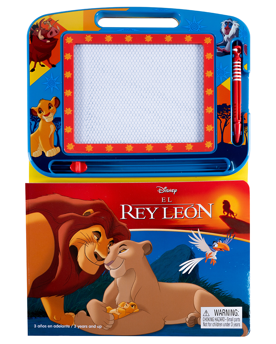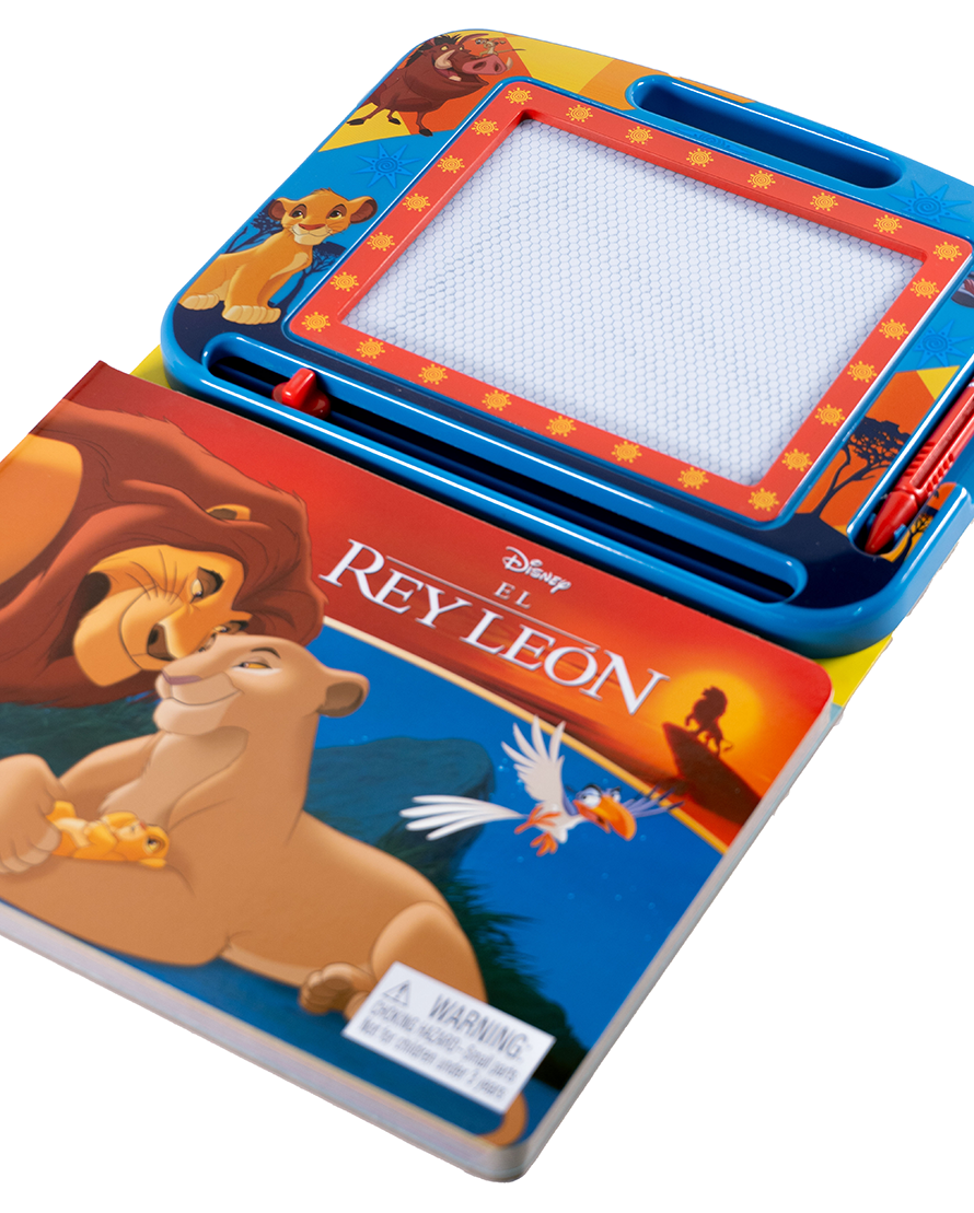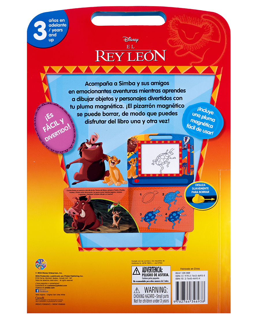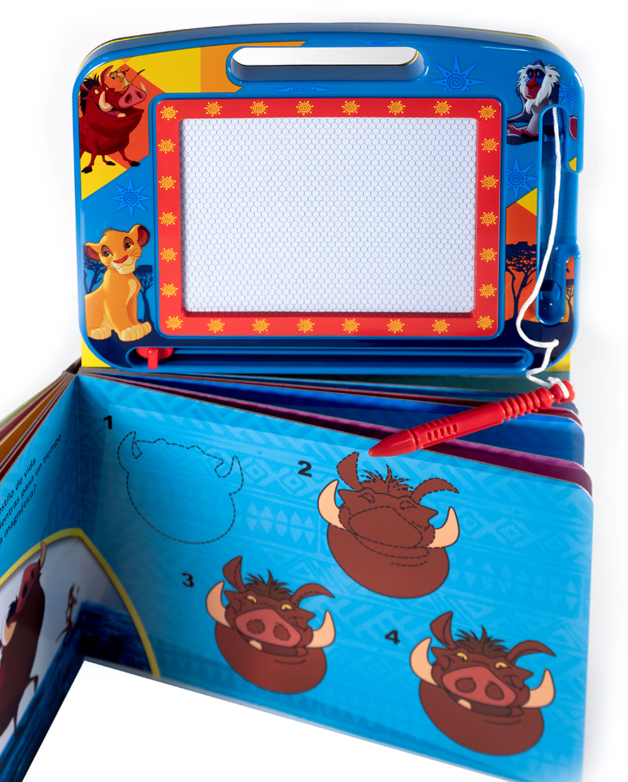 Dibuja y aprende con Simba y sus amigos en este libro con pizarra magnética para repetir una y otra vez.