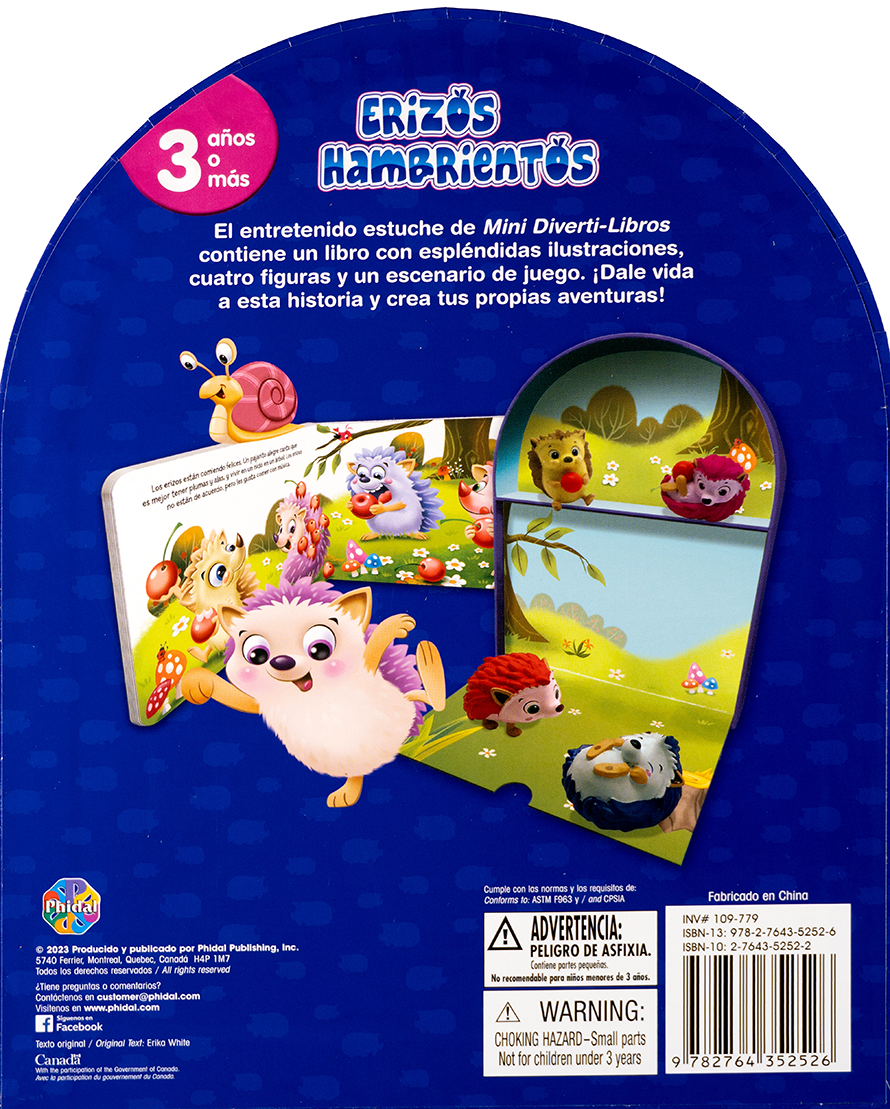 Erizos Hambrientos es un divertido mini libro con ilustraciones coloridas, acompañado de 4 simpáticas figuras de erizos y un escenario desplegable. Perfecto para niños y niñas curiosos que disfrutan las historias de amistad y comida. Ideal para mayores de 3 años, fomenta la lectura temprana, el juego simbólico y la narración creativa. ¡Una experiencia para leer y jugar!