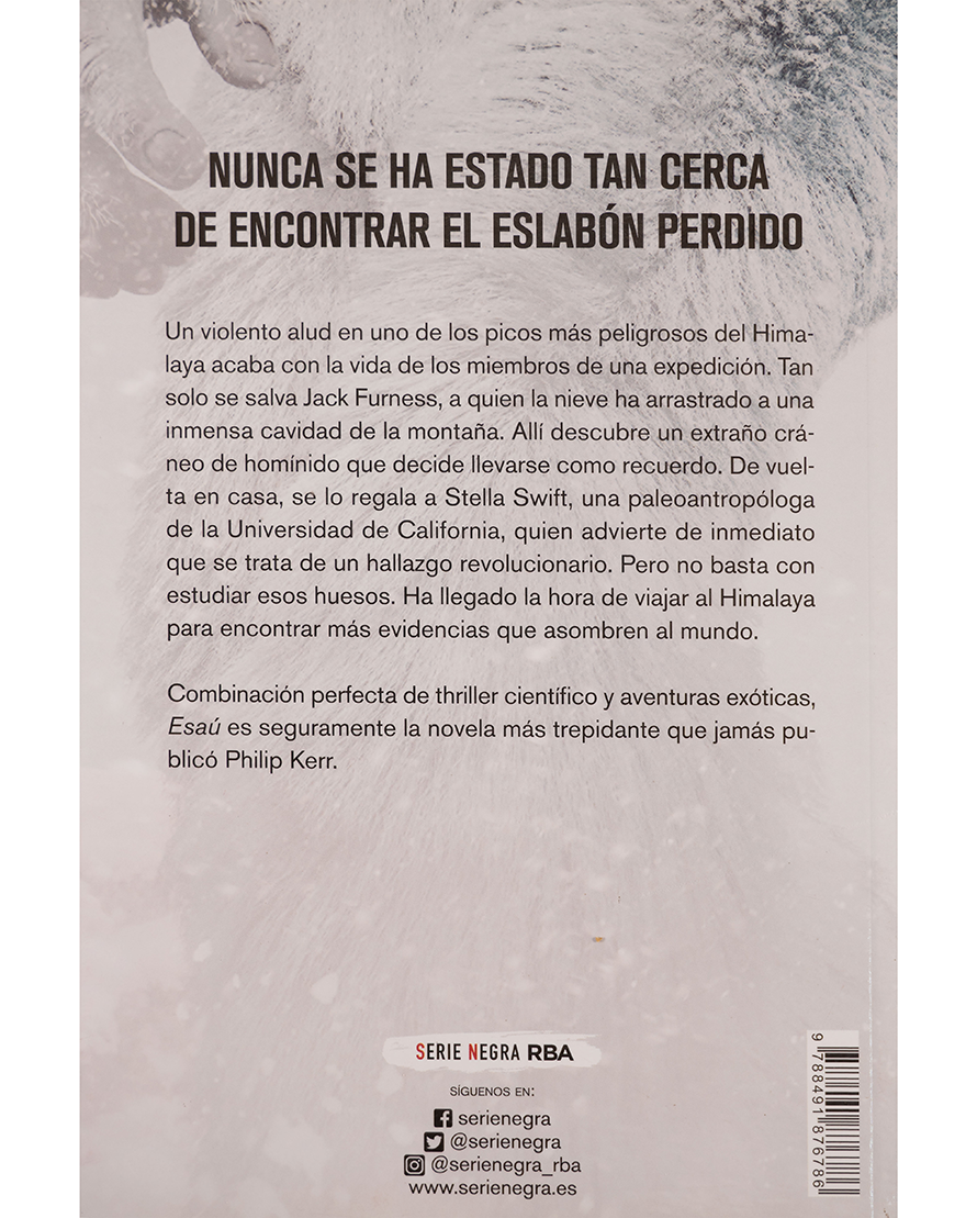 Un alud en los Himalayas deja como único superviviente a Jack Furness, quien encuentra en la nieve un extraño cráneo de homínido. Con la ayuda de la paleontóloga Stella Swift, descubre que podría tratarse del eslabón perdido. La investigación los conduce de nuevo a las montañas, donde el peligro no proviene solo de la naturaleza, sino de aquellos que no desean que la verdad salga a la luz. Esaú es un thriller científico vibrante que combina aventura, misterio y exploración en uno de los escenarios más imponentes del planeta.