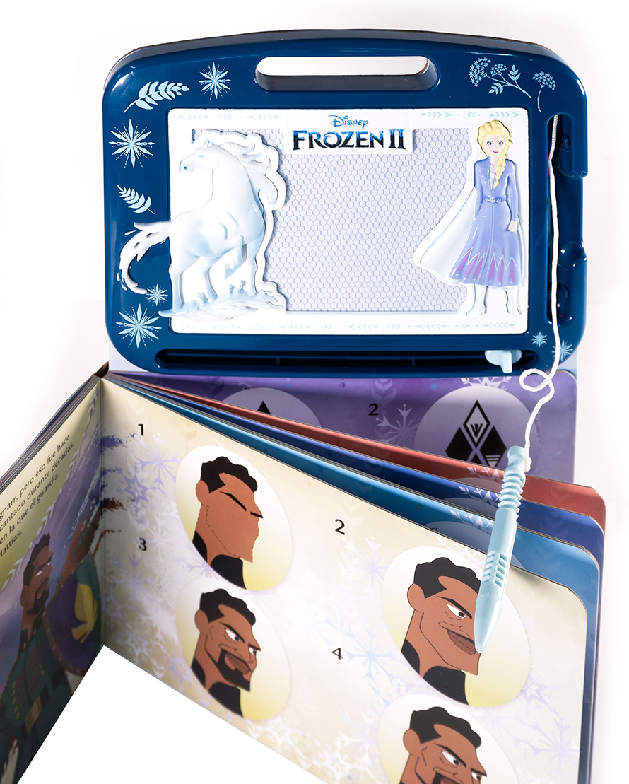 Acompaña a Olaf y sus amigos de Frozen II en una mágica aventura de dibujo. Este libro ofrece una pizarra magnética que puedes borrar fácilmente, permitiendo repetir los ejercicios cuantas veces quieras. Con ayuda de la pluma magnética, los pequeños artistas aprenderán a dibujar personajes y objetos de su película favorita. Recomendado para mayores de 3 años.