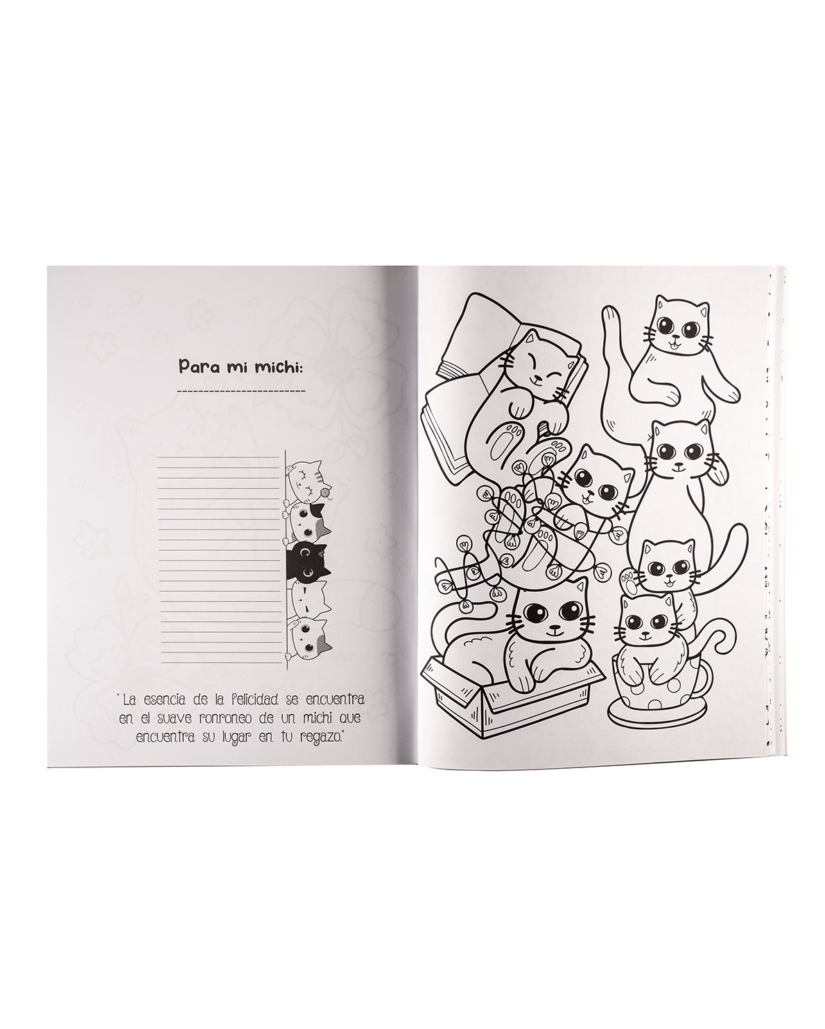 Una experiencia de arte y cariño que fortalece el vínculo con tu michi mientras llenas de color cada página.