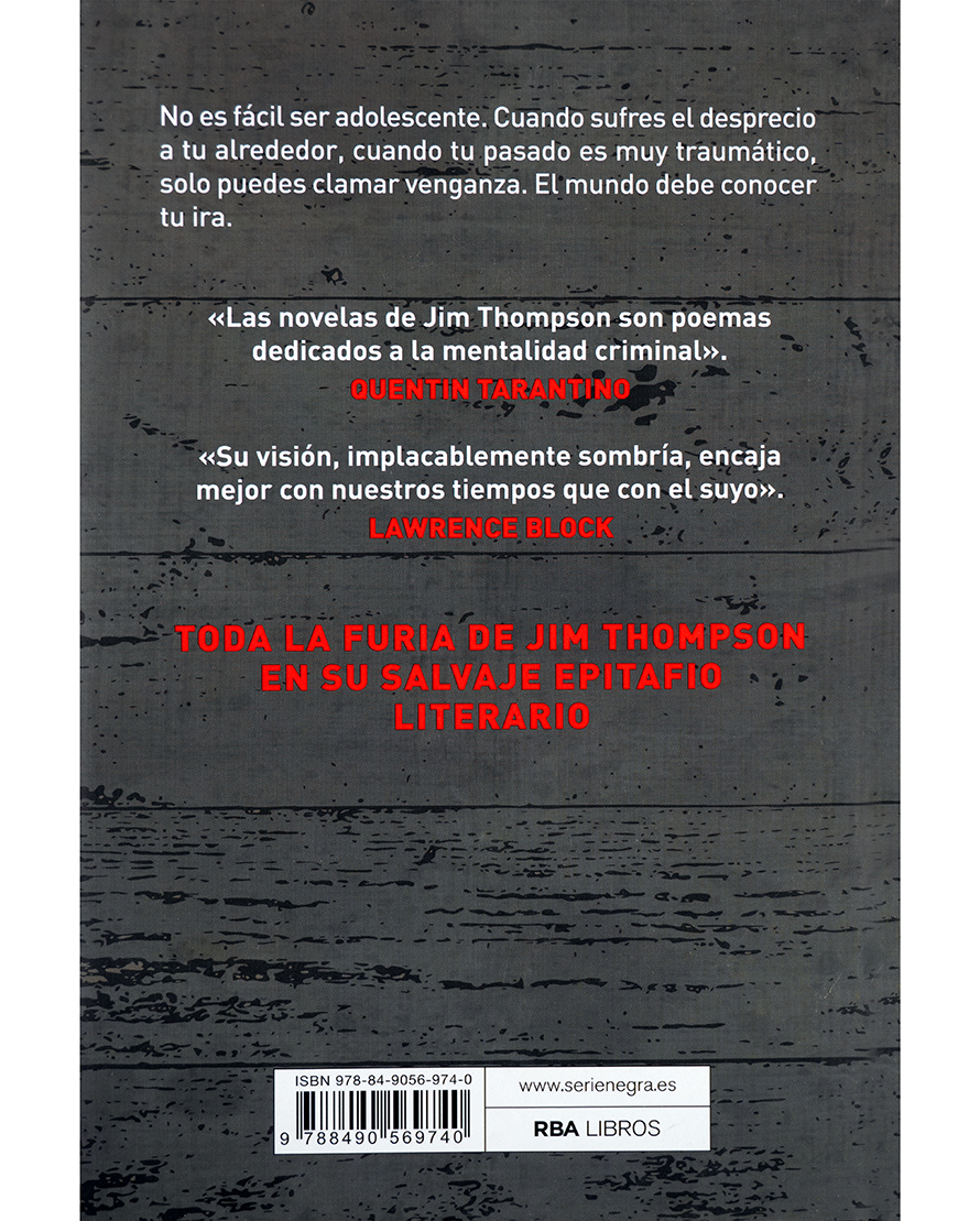Jim Thompson, uno de los grandes autores del género negro, ofrece en Hijo de la ira un retrato implacable de la adolescencia marcada por el trauma, la marginación y la violencia. La historia sigue a un joven que, tras sufrir desprecio y humillaciones, se ve arrastrado hacia la oscuridad de la venganza. Con un estilo salvaje y desgarrador, Thompson convierte la rabia adolescente en un epitafio literario feroz, considerado por Quentin Tarantino como “poesía criminal”.