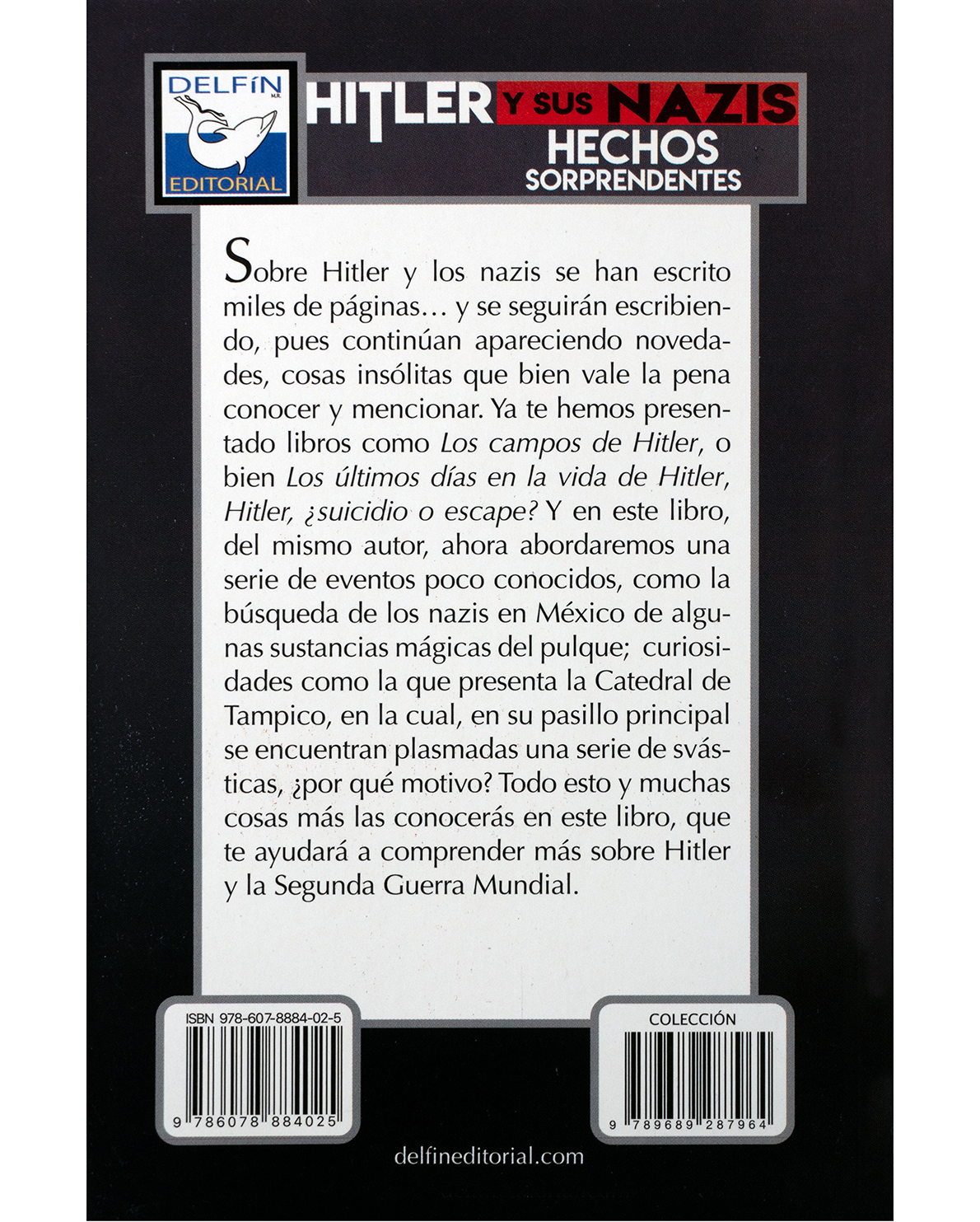 Este libro revela aspectos poco conocidos del régimen nazi y de la figura de Adolf Hitler, combinando datos históricos con sorprendentes curiosidades que invitan a la reflexión. Juan Antonio Amezcua explora temas como la presencia de símbolos nazis en México, mitos en torno al ocultismo del Tercer Reich y misterios sin resolver de la Segunda Guerra Mundial. “Hitler y sus nazis: Hechos sorprendentes” es una lectura fascinante para quienes buscan comprender desde una nueva perspectiva uno de los capítulos más oscuros y enigmáticos de la historia moderna.