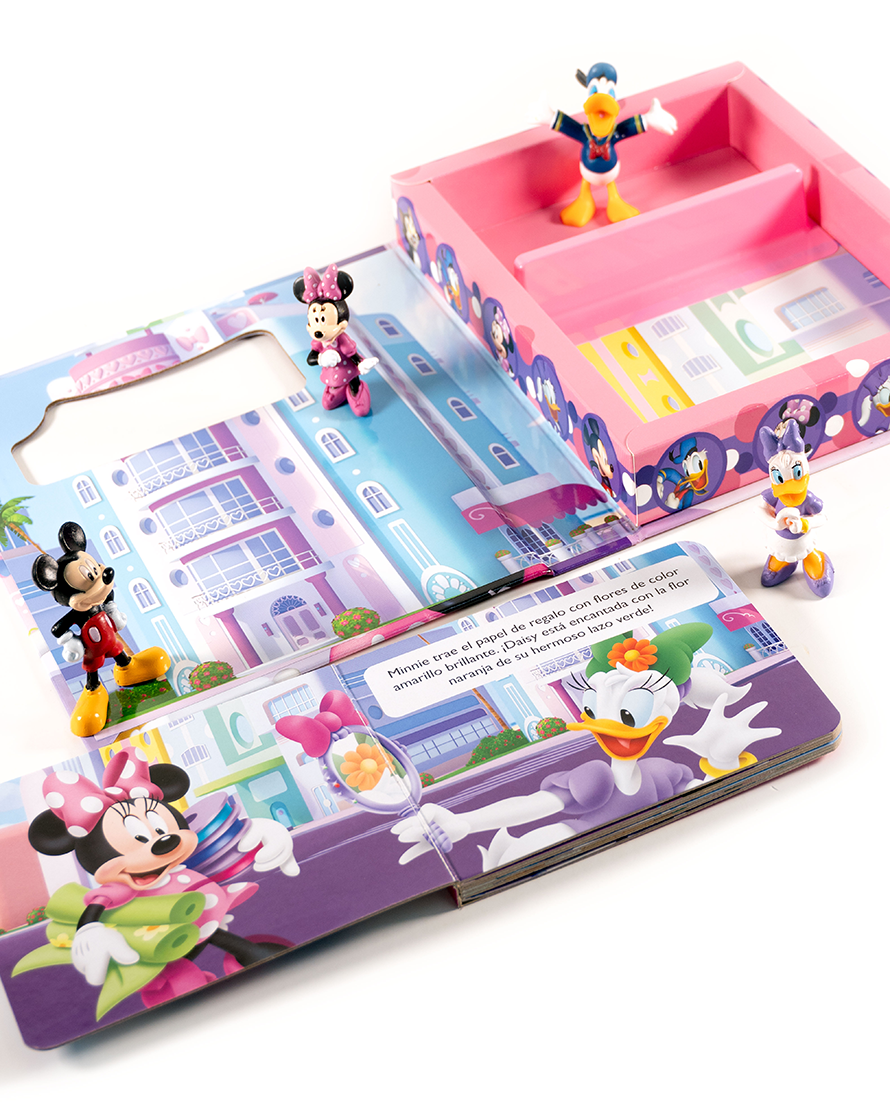 Diversión y estilo con Minnie y sus amigos. Incluye 4 figuritas y un cuento ilustrado que estimula la imaginación.