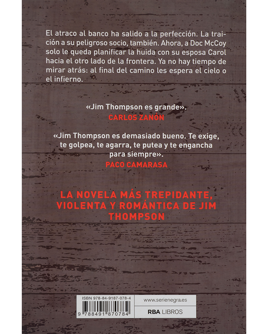 Doc McCoy ha ejecutado el golpe perfecto: un atraco impecable y una traición calculada a su peligroso socio. Ahora solo le queda escapar con Carol, su esposa, hacia la frontera. Pero en este camino lleno de tensión, donde cada decisión puede ser la última, no hay tiempo para mirar atrás: los esperan el cielo o el infierno. La huida es la novela más trepidante, violenta y romántica de Jim Thompson, un clásico del noir llevado al cine, que combina adrenalina, amor y fatalidad en una historia imposible de olvidar.