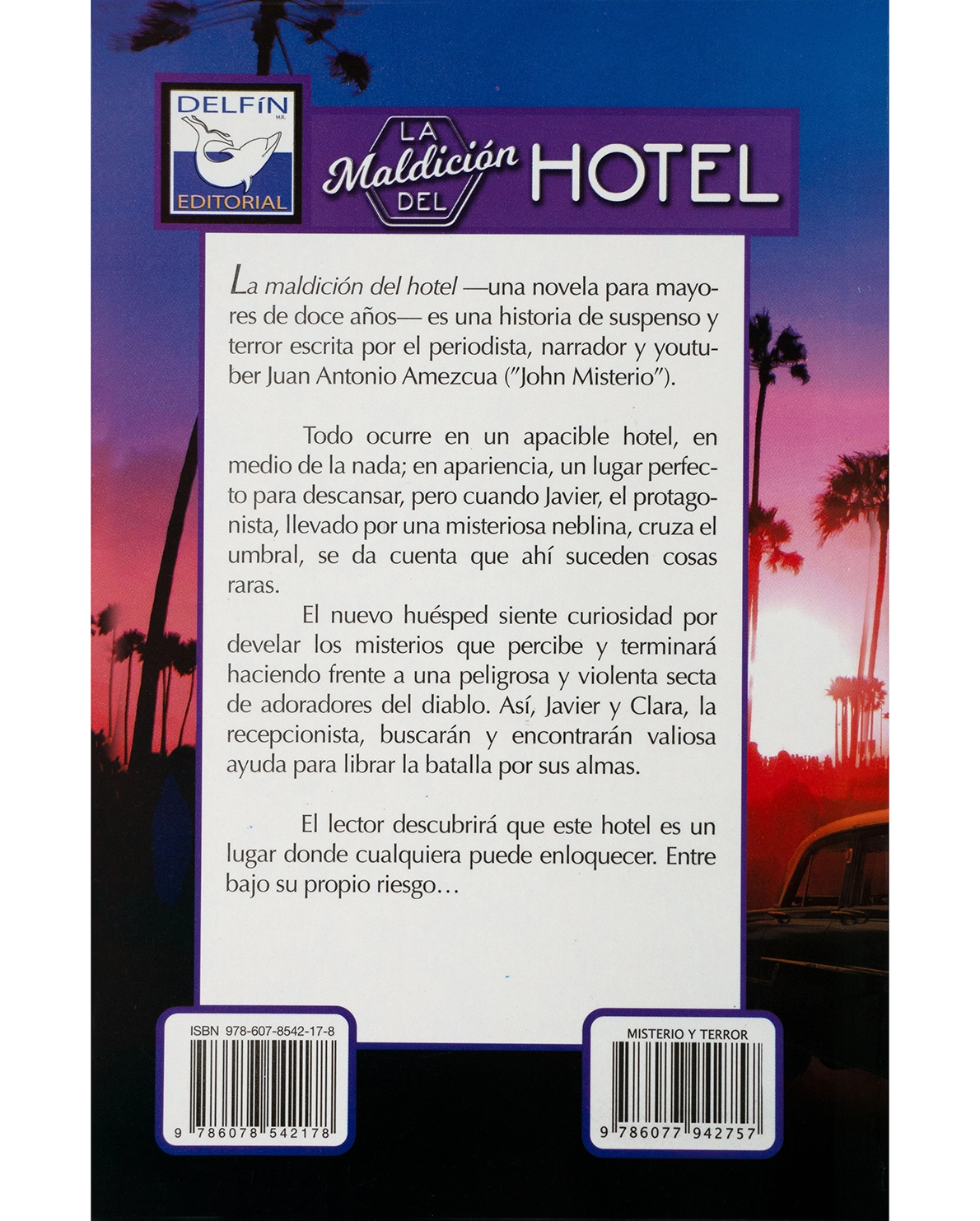 En La Maldición del Hotel, el periodista y narrador Juan Antonio Amezcua —conocido como John Misterio— te sumerge en una historia de terror psicológico y ocultismo. Javier, un huésped común, llega a un hotel en medio de la nada, pero pronto descubre que el lugar oculta una terrible verdad: una secta de adoradores del diablo opera tras sus muros.