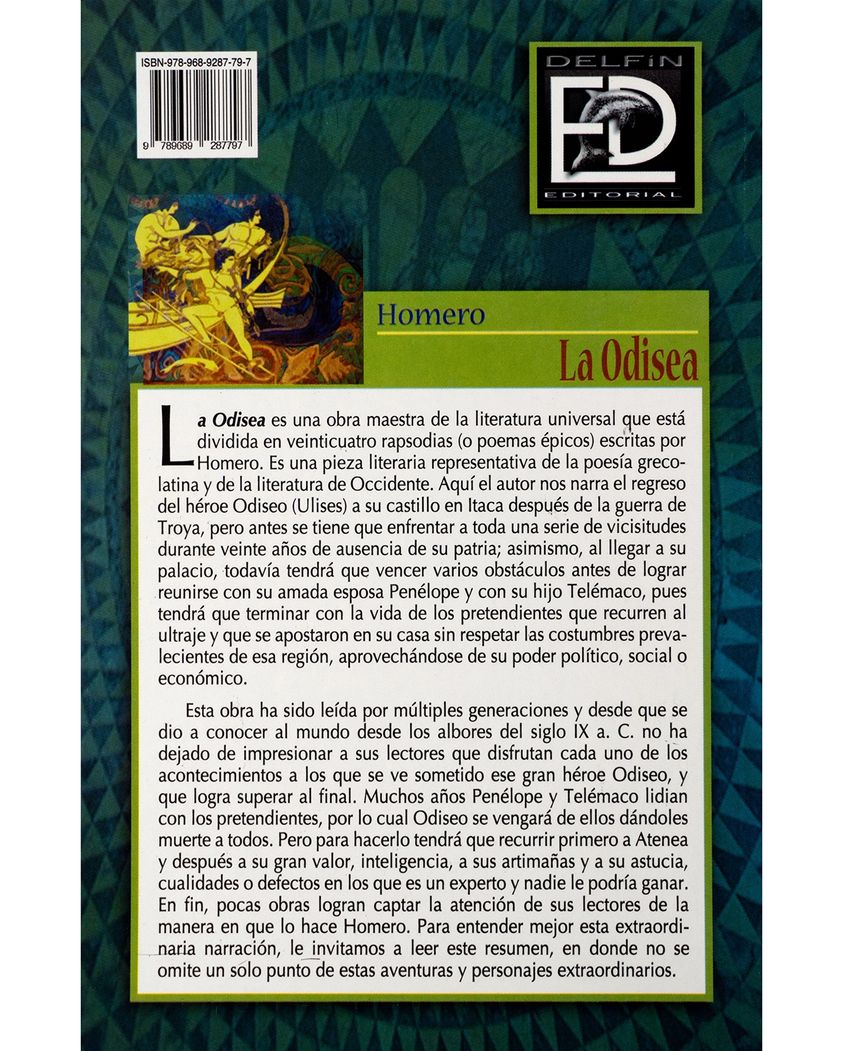 Mientras tanto, Penélope y su hijo Telémaco resisten el acoso de los pretendientes que buscan apoderarse del reino. Esta obra no solo es una epopeya de aventuras, sino también una profunda reflexión sobre la perseverancia, el ingenio humano, la identidad y el hogar. Esta edición presenta una síntesis clara acompañada de autoevaluación, ideal para estudiantes y nuevos lectores.