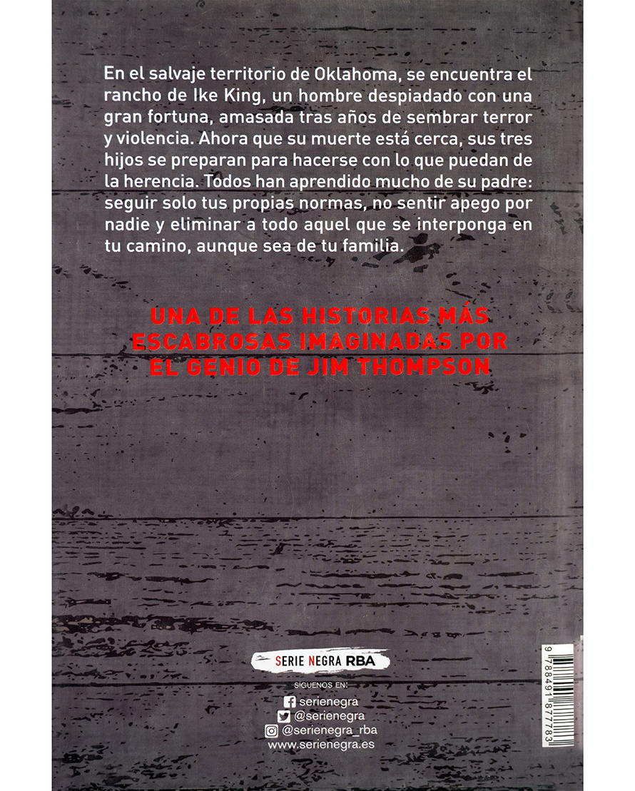 En un rancho de Oklahoma, el despiadado Ike King ha amasado una fortuna a base de violencia y terror. Con su muerte cercana, sus tres hijos se preparan para heredar, aplicando las lecciones aprendidas: no seguir reglas, no sentir afecto y eliminar a cualquiera que se interponga en su camino. La sangre de los King es una de las historias más escabrosas del genio Jim Thompson, un retrato feroz de la codicia, la ambición y la corrupción familiar en su máxima expresión.