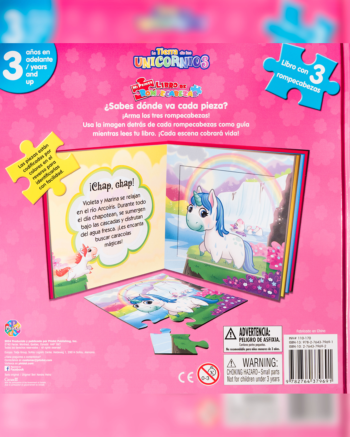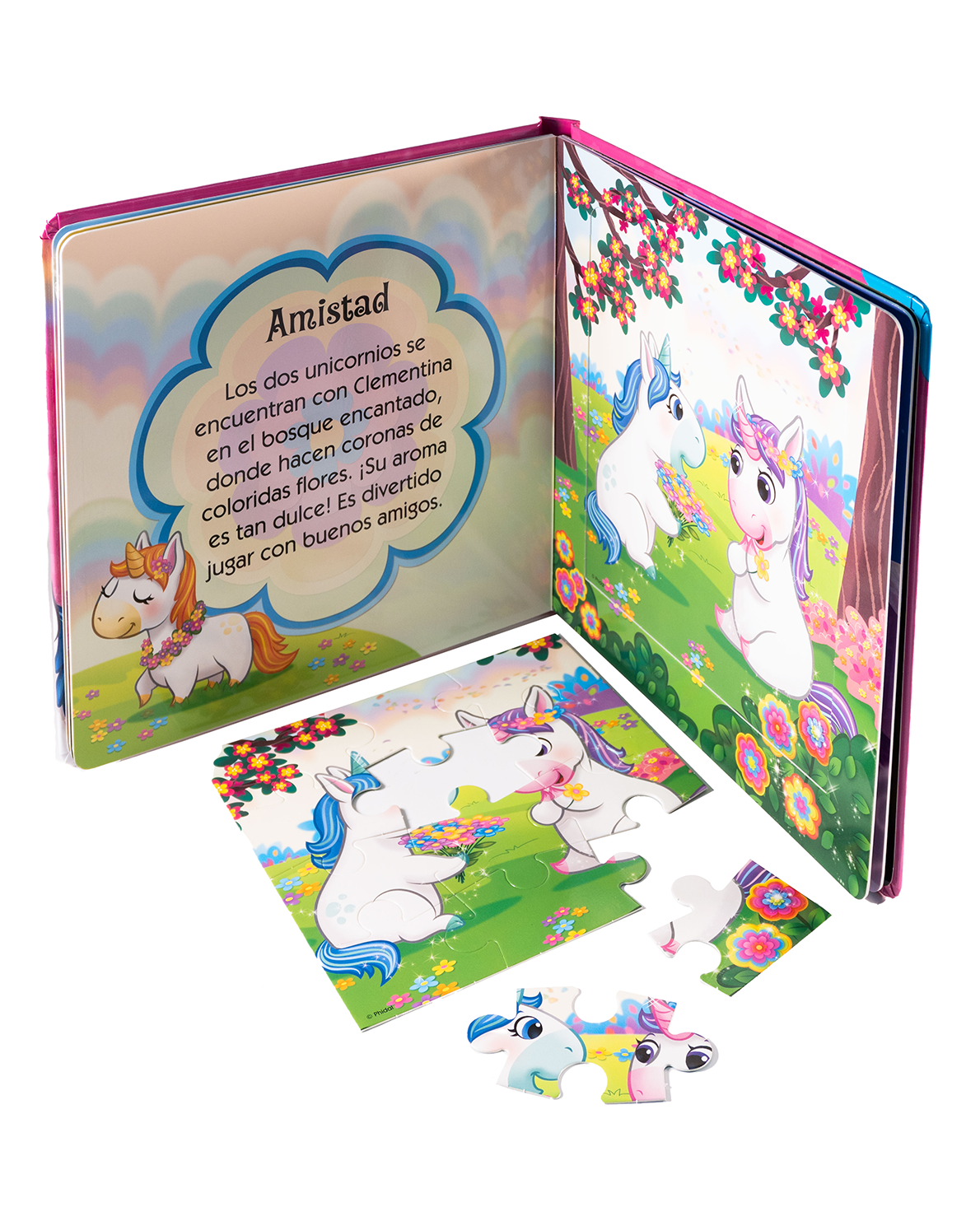Este encantador libro transporta a los pequeños al mundo mágico de los unicornios. Incluye 3 rompecabezas de gran tamaño, ideales para manos pequeñas. Cada rompecabezas viene acompañado de una historia divertida que puedes leer mientras tu hijo arma la escena. Diseñado para estimular la motricidad fina, la observación y el amor por la lectura desde temprana edad. Recomendado para niños de 3 años en adelante.