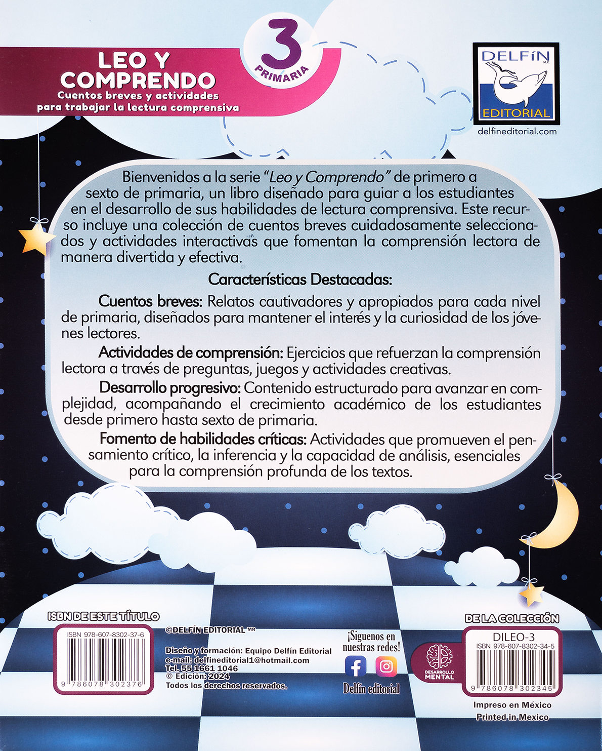 Leo y comprendo 3 es parte de la serie enfocada en fortalecer la comprensión lectora en niños de primaria. Contiene relatos interesantes y adecuados para la edad, acompañados de ejercicios que refuerzan la comprensión mediante preguntas, juegos y actividades creativas. Su contenido estructurado permite avanzar de forma progresiva en la lectura, fomentando habilidades como el pensamiento crítico, la inferencia y el análisis de textos. Es una herramienta ideal para que los estudiantes desarrollen una comprensión profunda de manera divertida y efectiva.