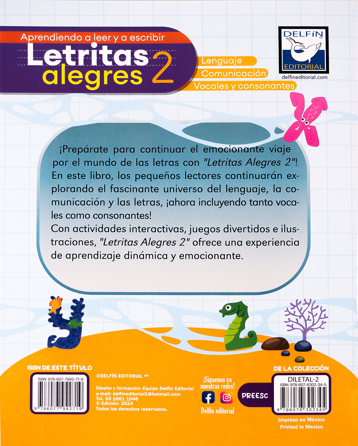 Letritas Alegres 2 es la continuación ideal para niños en edad preescolar que ya han iniciado su camino en el aprendizaje del lenguaje. Este libro extiende la exploración del abecedario incluyendo no solo las vocales, sino también las consonantes, reforzando la lectoescritura de forma divertida y progresiva.
