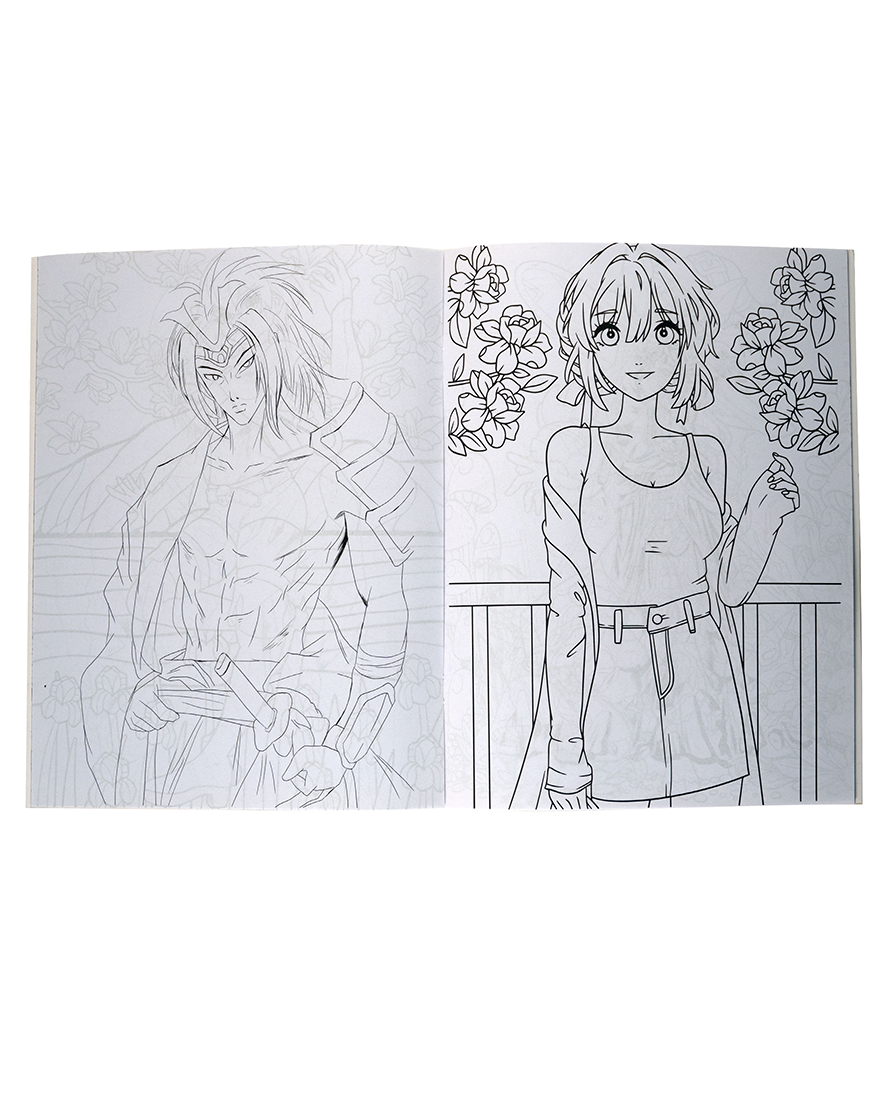 Da vida a tus personajes de manga favoritos con este libro para colorear que incluye plantillas de stickers.