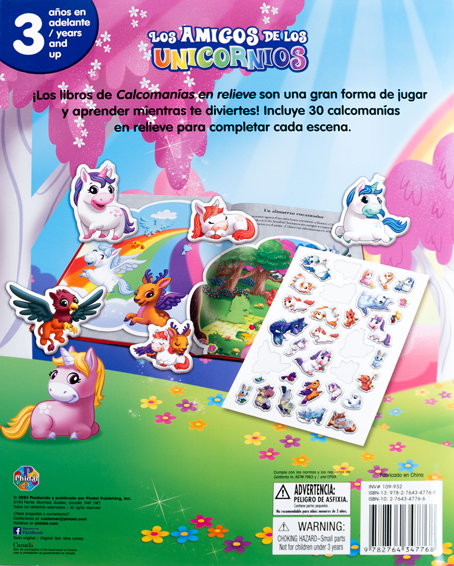 Sumérgete en un universo de arcoíris, estrellas y criaturas encantadas con Los amigos de los unicornios. Este libro invita a las niñas y niños a crear escenas fantásticas con más de 30 calcomanías en relieve. Cada página está diseñada para inspirar la imaginación y el juego creativo. Perfecto para pequeños soñadores de 3 años en adelante, este libro es un viaje lleno de amistad y magia.