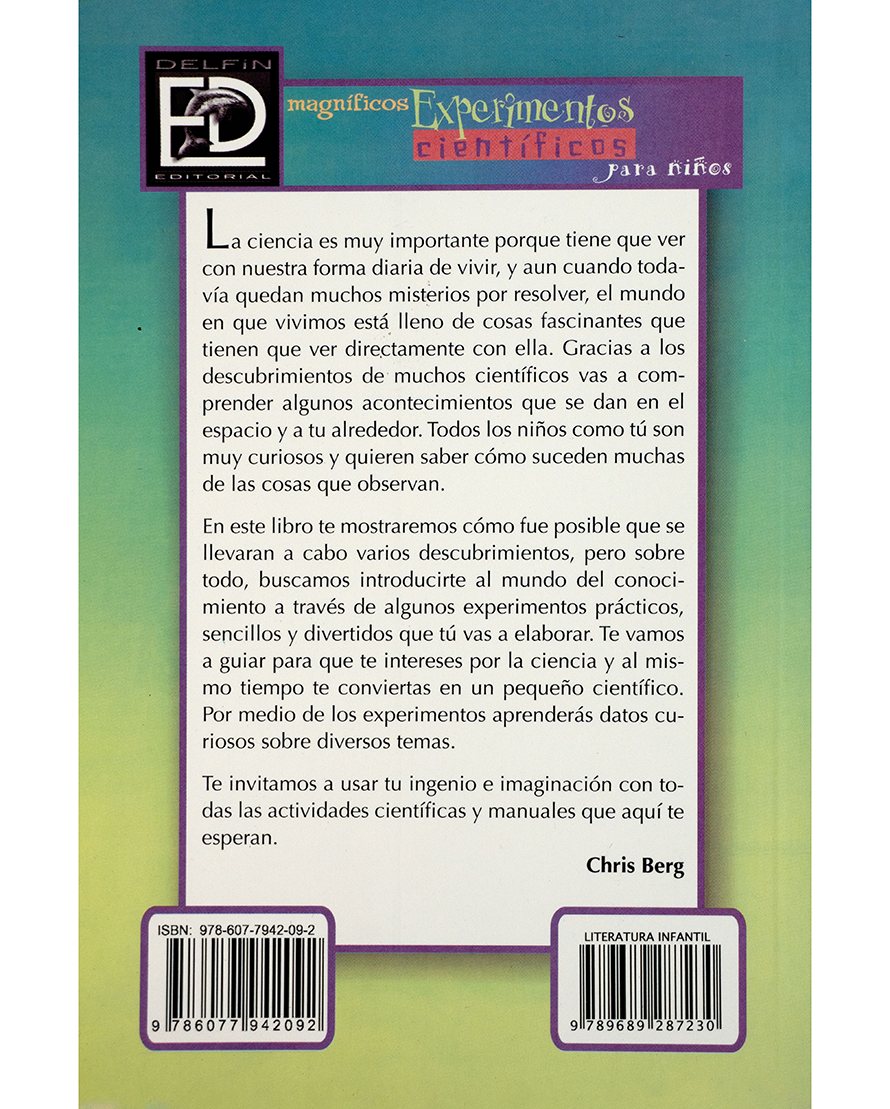 Magníficos experimentos científicos para niños es una guía diseñada para despertar la curiosidad y el interés por la ciencia desde temprana edad. A través de experimentos prácticos, sencillos y entretenidos, los pequeños lectores descubren principios científicos que explican fenómenos de la vida cotidiana.