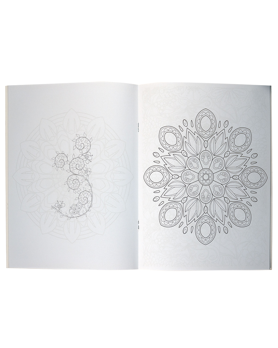 Un libro lleno de mandalas y flores para colorear, ideal para relajarte y estimular tu creatividad.