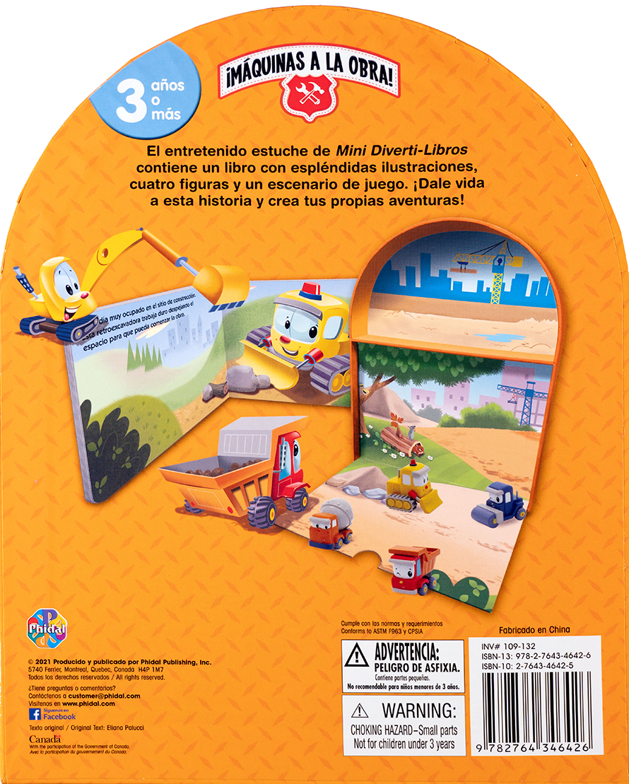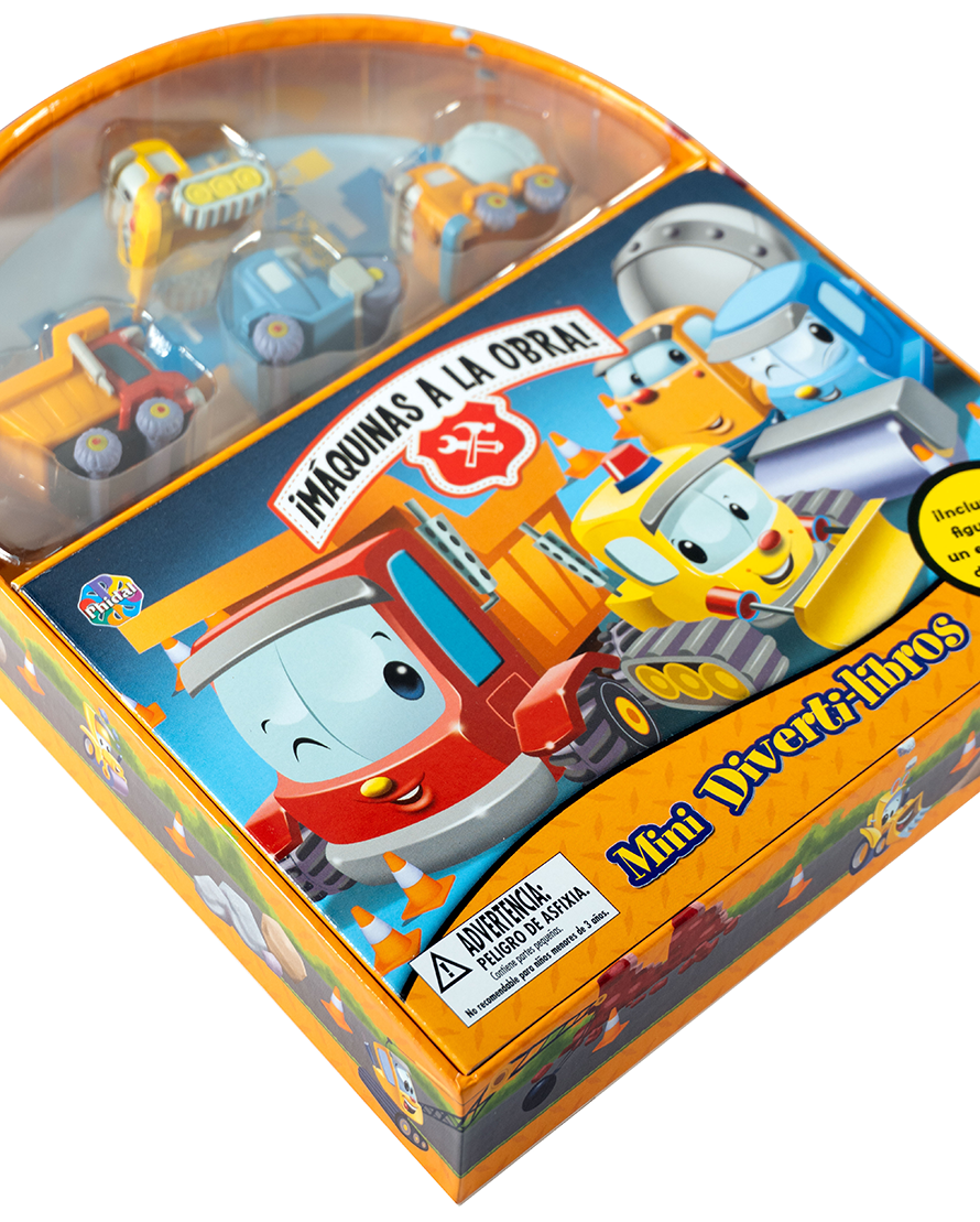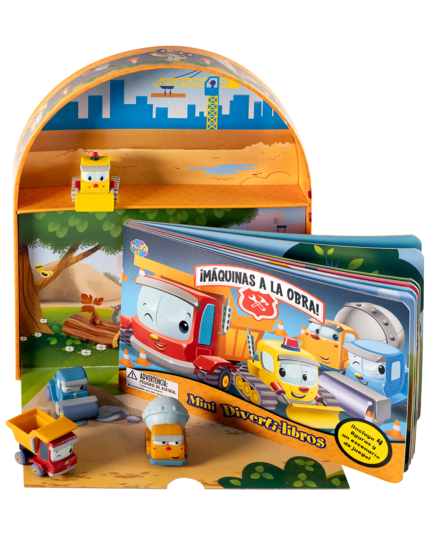 ¡La construcción comienza con Máquinas a la Obra! Este Mini Diverti-libro incluye un libro con ilustraciones llenas de acción, un escenario de trabajo y 4 figuras de maquinaria (como camión, rodillo, revolvedora y excavadora). Perfecto para peques curiosos y amantes de los vehículos, este set estimula el juego creativo mientras aprenden sobre las máquinas de construcción. ¡Construye historias sin límites!