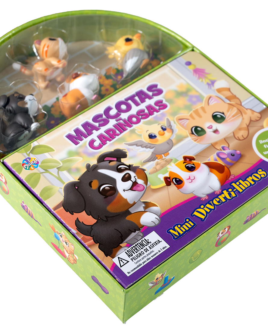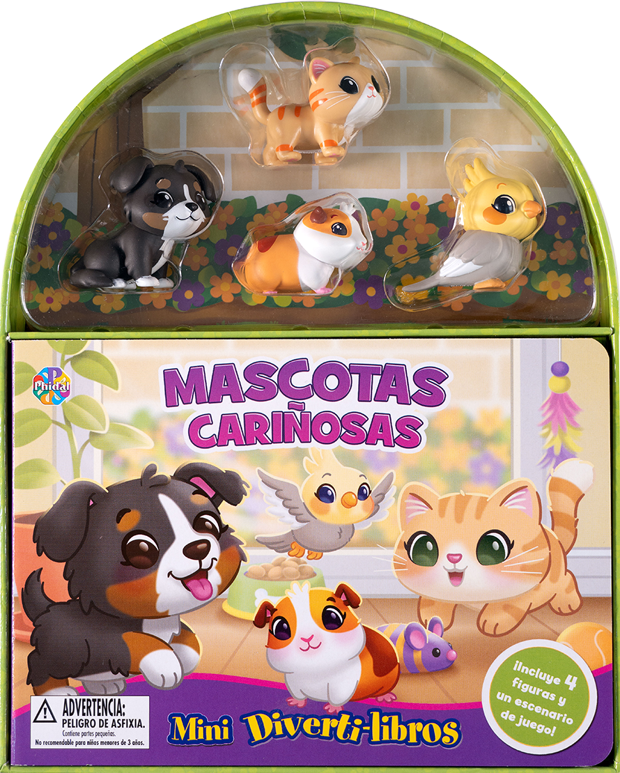 Mascotas Cariñosas es un mini libro ideal para los pequeños amantes de los animales. Con ilustraciones encantadoras, 4 figuras de mascotas (gato, perro, ave y cobaya) y un escenario de juego, este estuche es perfecto para crear historias en casa. A partir de los 3 años, niños y niñas podrán estimular su lenguaje, imaginación y habilidades motoras mientras se divierten. ¡Un regalo ideal para los más tiernos del hogar!