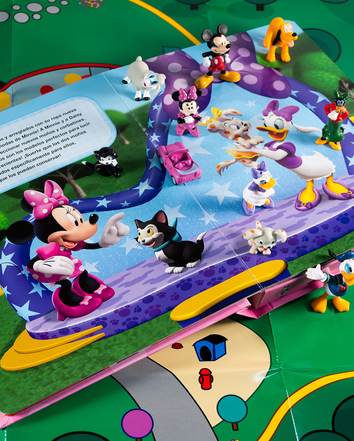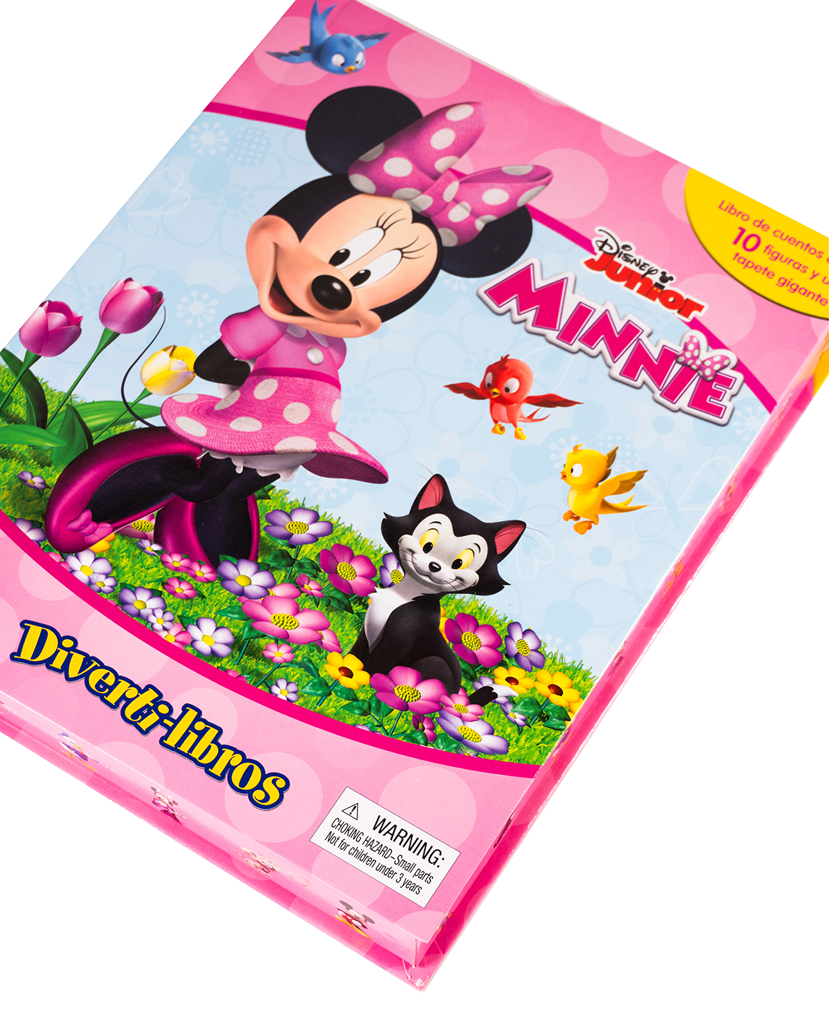 ¡Diversión con estilo y ternura con Minnie! Este encantador Diverti-libro incluye una historia alegre, 10 figuras de personajes clásicos como Minnie, Daisy y Pluto, y un tapete gigante lleno de color y escenarios encantadores. Perfecto para que los pequeños a partir de 3 años imaginen, jueguen y aprendan en el mundo mágico de Minnie.