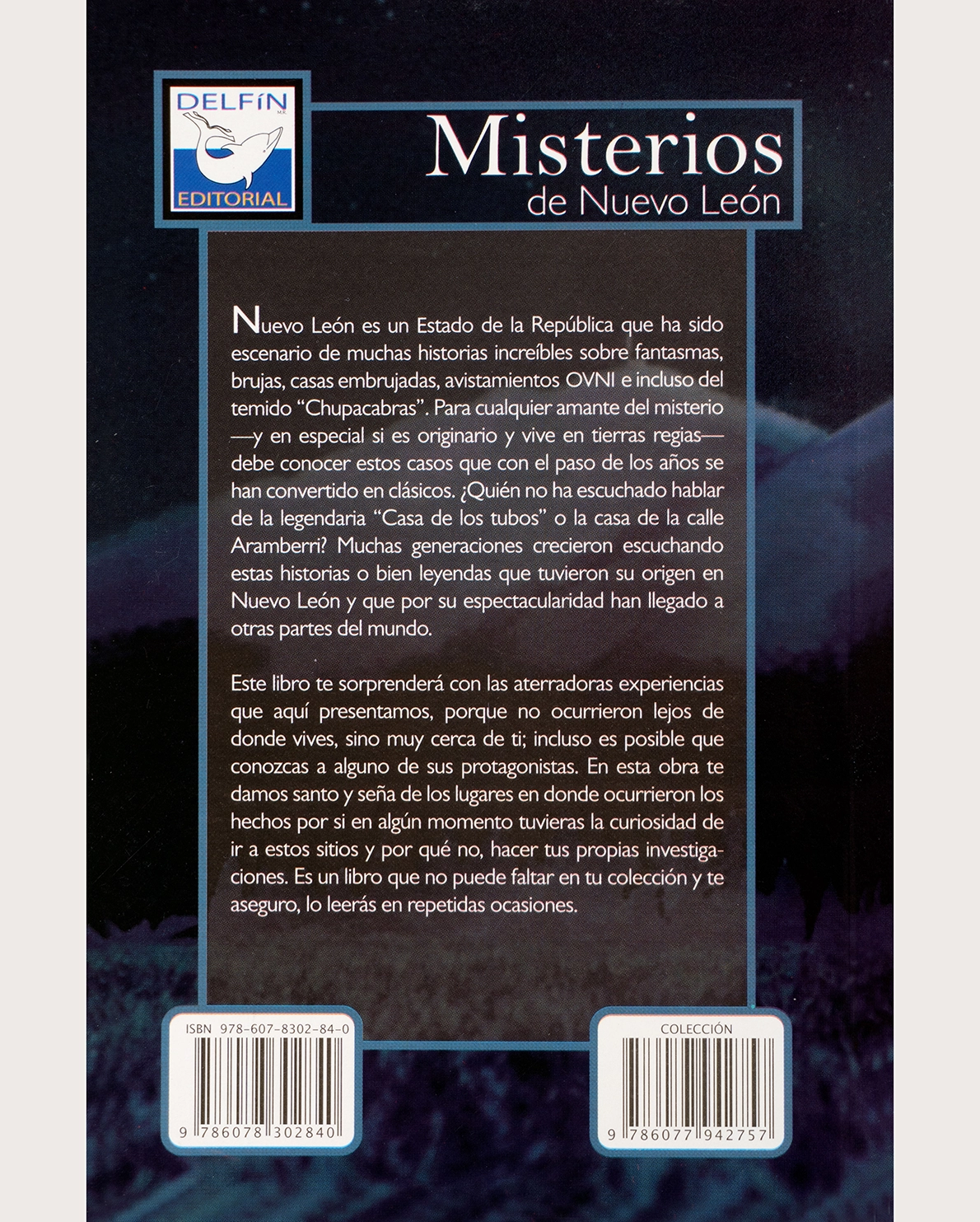 Misterios de Nuevo León revela los secretos más escalofriantes de uno de los estados con mayor tradición paranormal de México. Juan Antonio Amezcua Castillo recopila testimonios, investigaciones y leyendas que van desde la Casa de los Tubos hasta la Casa de Aramberri, pasando por avistamientos de OVNIs y apariciones inexplicables.