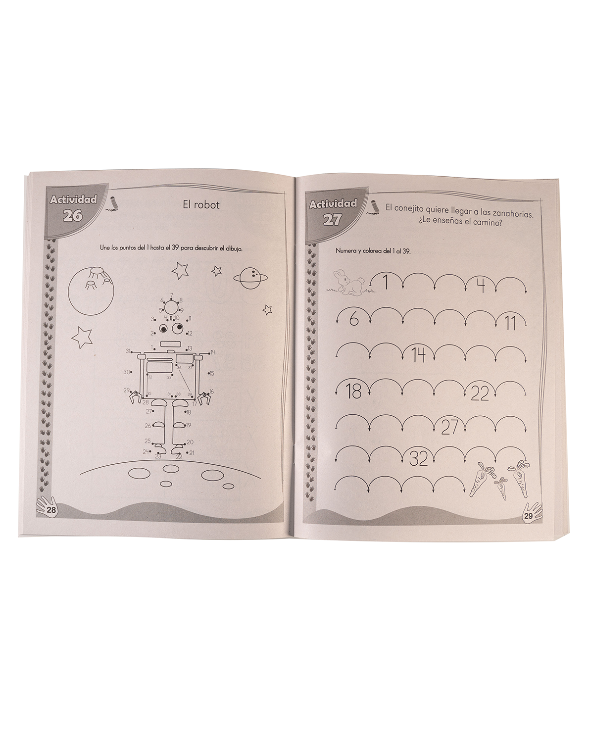 Libro didáctico de 21x27cm, con 64 paginas de ejercicios y actividades para el aprendizaje de los números y sus usos, edición para primero de kínder.