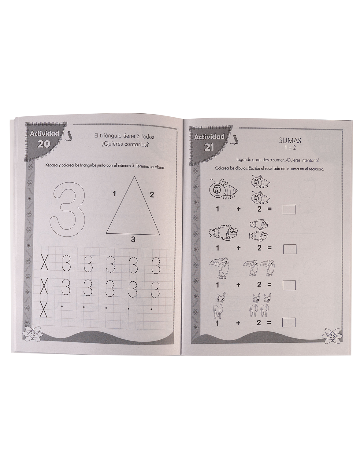 Libro didáctico de 21x27cm, con 64 paginas de ejercicios y actividades para el aprendizaje de los números y sus usos, edición para primero de kínder.