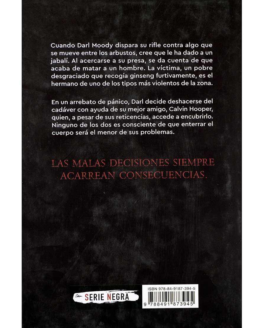 Darl Moody cree haber cazado un jabalí, pero al disparar mata por accidente a un hombre. En pánico, pide ayuda a su mejor amigo, Calvin Hooper, y juntos deciden ocultar el cuerpo. Lo que no saben es que la víctima era el hermano de uno de los criminales más violentos de la zona. Ojo por ojo es un thriller rural cargado de tensión, donde cada mala decisión acerca a los protagonistas a un destino inevitable. David Joy retrata la crudeza de la vida en las montañas de Carolina del Norte con un realismo brutal y emocionante.